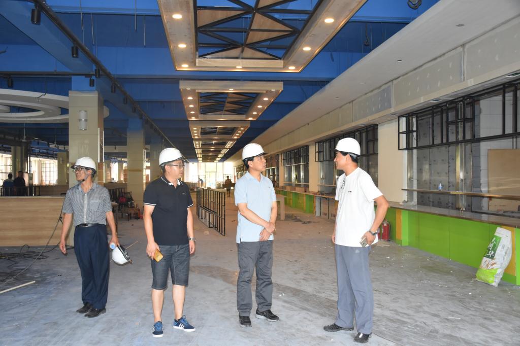 7月26日,副院长孟庆旭到后勤保障部门检查指导工作并慰问暑期后勤项目施工人员,现场查看了长清校区一号食堂升级改造、1号学生公寓粉刷、1号和4号学生公寓东轻轨沿线槐树林下绿化、学生公寓空调安装工作情况,在学生公寓与学生交谈,了解学生暑假留校情况与学生诉求,并在后勤管理处会议室召开了座谈会。
