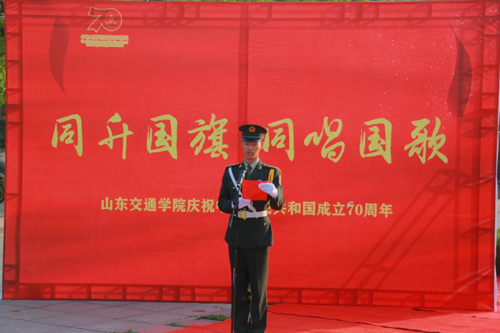 升旗仪式结束后,诗朗诵《泱泱华夏、吾辈当自强》表达了交院学子对中华人民共和国70年砥砺奋斗、70年艰苦创业、70年改革创新所取得的巨大成就的骄傲与自豪,表达了青年学生为祖国繁荣富强贡献力量的信心与决心。