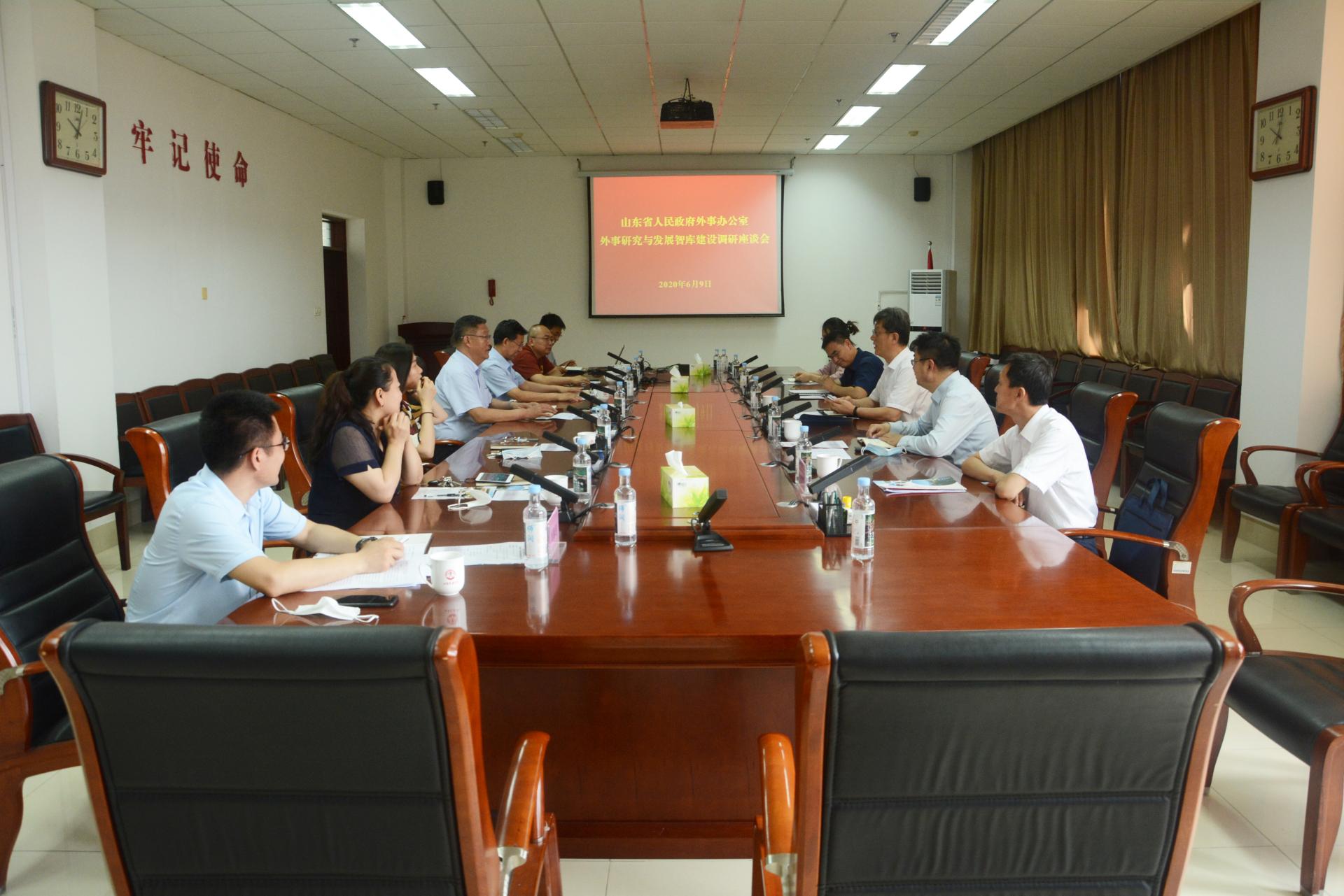 6月9日上午,山东省人民政府外事办公室副主任李永森一行5人来校进行外事研究与发展智库建设调研座谈。党委书记王焕斌、院长陈松岩、副院长姜华平在办公楼接待了客人并举办座谈会。