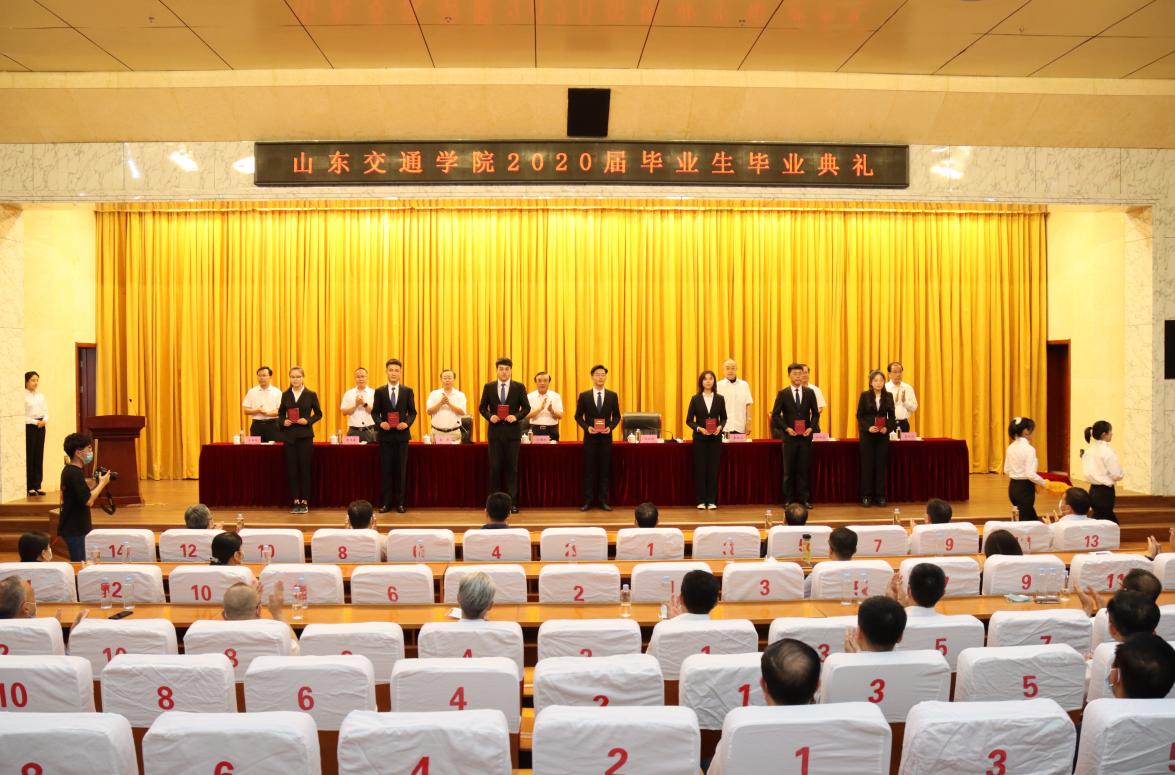 6月18日下午,山东交通学院2020届毕业生毕业典礼在长清校区学术报告厅举行。学校领导王焕斌、陈松岩、唐勇、贾洪江、李贞涛、孔祥云、姜华平、孟庆旭出席典礼。典礼由党委副书记唐勇主持。