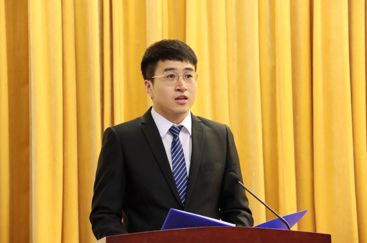 轨道交通学院刘建磊作为代表教师发言,祝贺同学们顺利毕业,并启迪大家踏上工作岗位后要爱岗敬业、务实创新,面对困难不退缩、不畏惧。