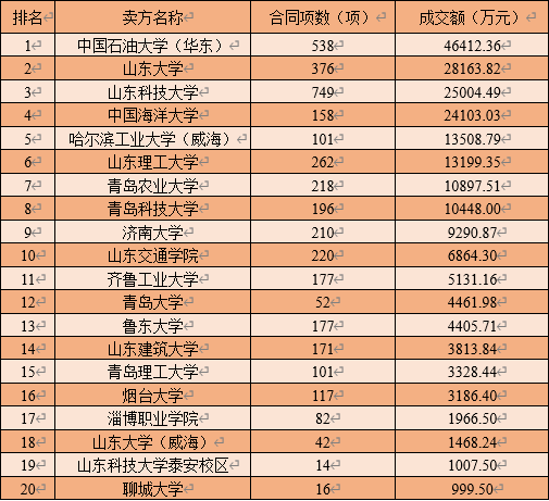 近日,省科技厅公布了《2019年度山东省技术市场统计分析报告》,我校以合同项数220项、成交额6864.3万元的优异成绩位列全省高校第10位、省属高校第6位。