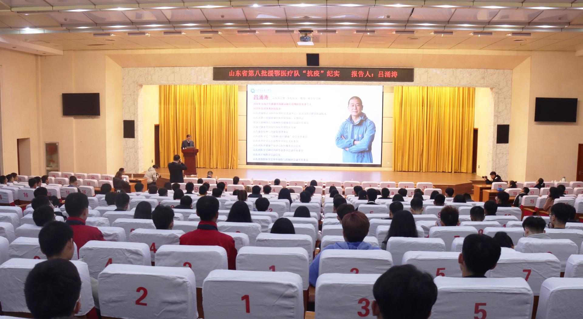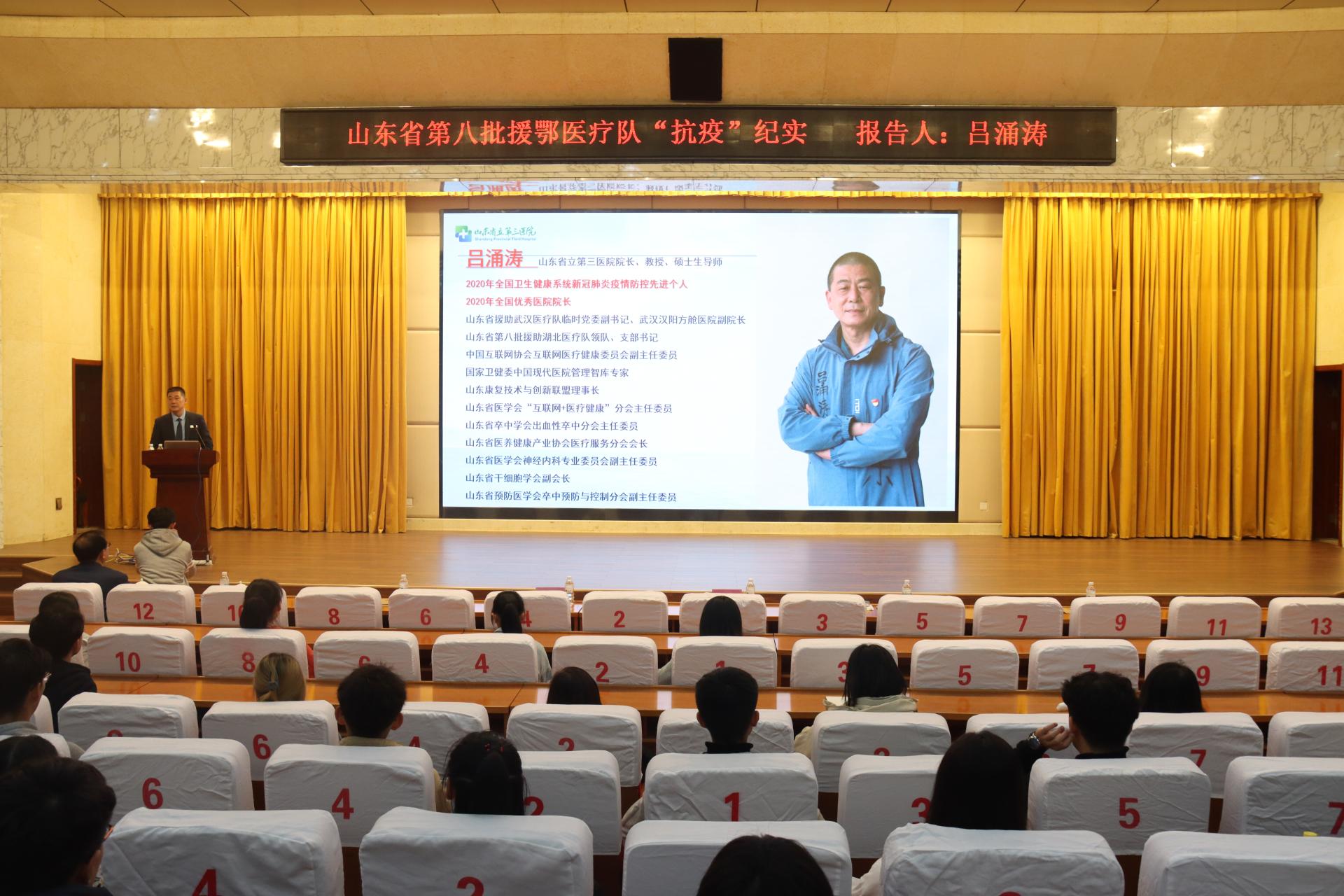 11月18日下午,山东省第八批援鄂医疗队队长,山东省立第三医院院长吕涌涛到我校作报告。报告会由副院长孔祥云主持。