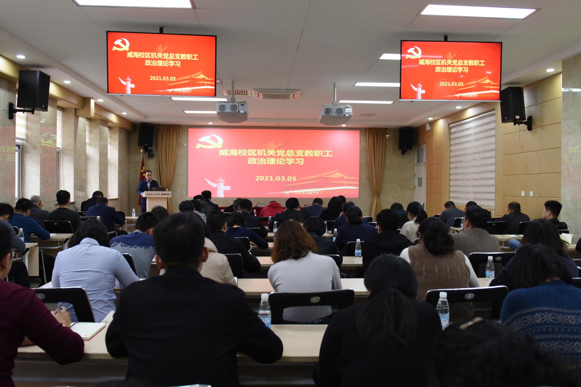 3月5日,威海校区机关党总支在校区第一报告厅开展教职工政治理论学习活动。学校党委委员、副院长李贞涛参加学习活动,党总支书记刘庆波主持学习活动。
