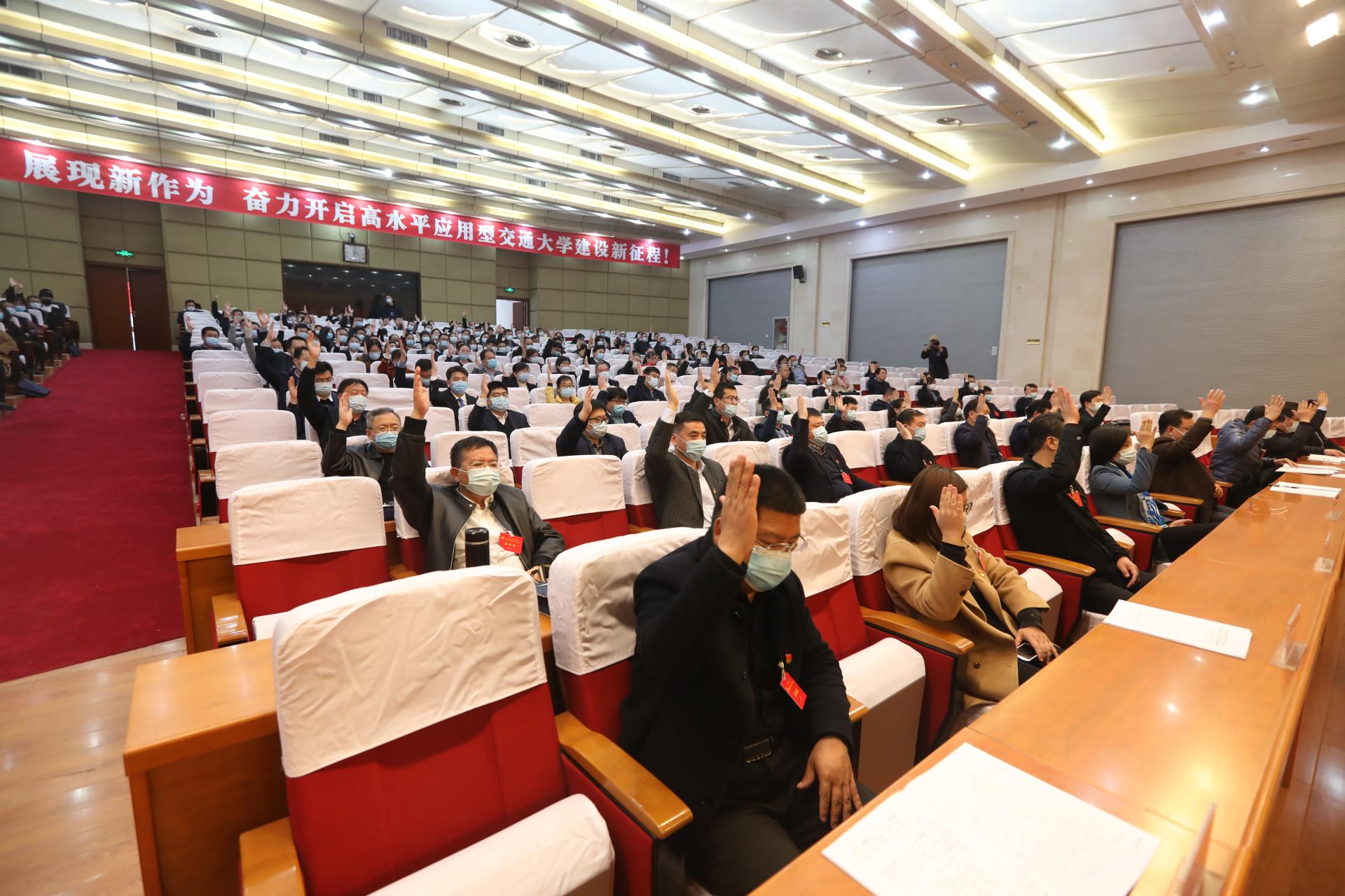 大会指出,今后五年,学校工作要围绕建成“高水平应用型交通大学”这一宏伟目标,着力建设以党的全面领导为统领的现代大学治理体系,突破硕士点、研究生规模、学科专业结构、教学成果、科研成果、基础设施条件等六个关键指标,加强特色优势凸显的学科筑峰体系、五育并举的人才培养体系、高层次人才引领的人才引育体系、基础应用双轮驱动的科技创新体系、融入交通强国战略的社会服务体系、包容开放的国际交流合作体系、以人为本绿色发展的服务保障体系等七个方面的体系建设,努力建设特色交大、创新交大、活力交大、开放交大、美丽交大、幸福交大!