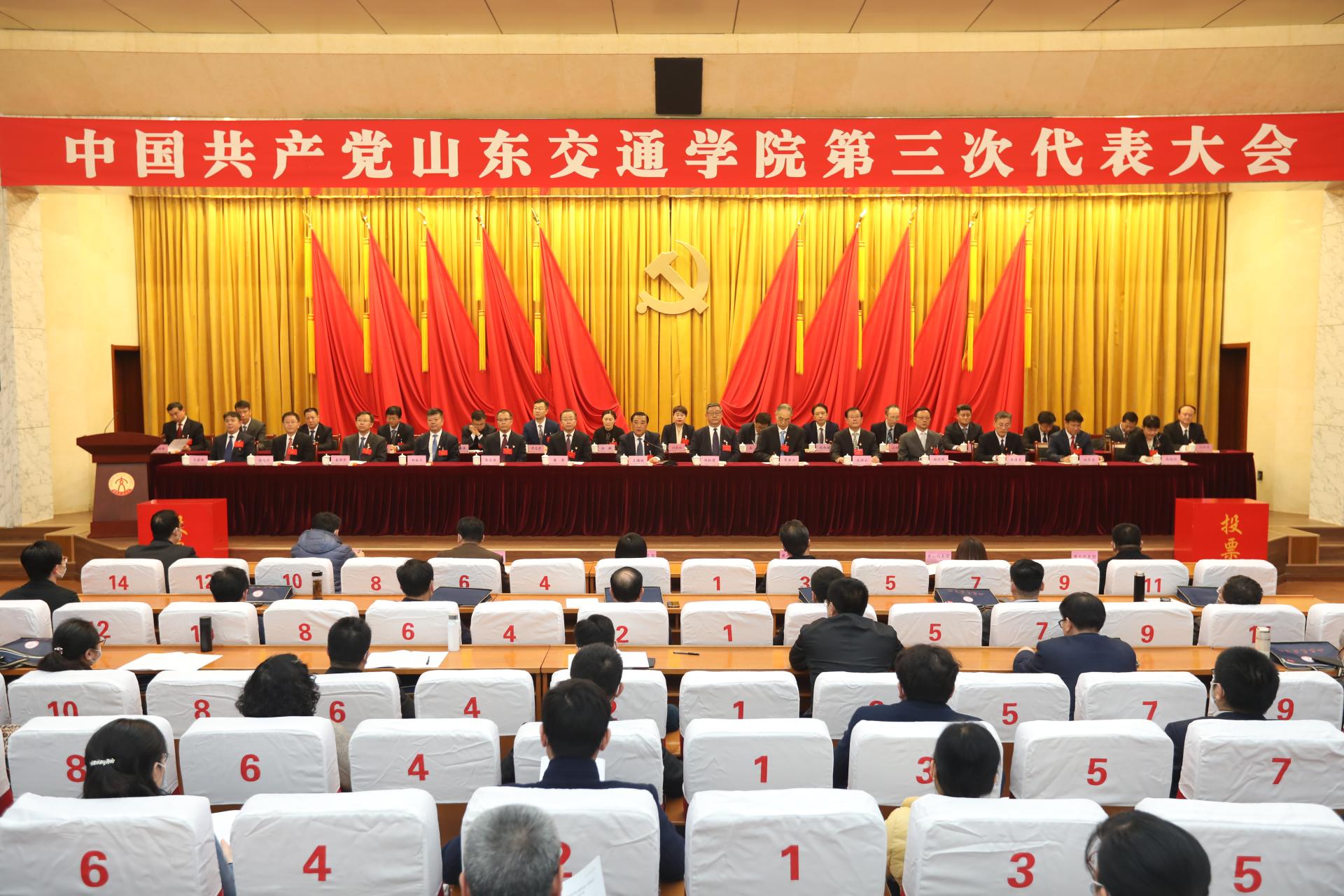 在总监票人和监票人的监督下,大会以无记名投票方式选举产生了中国共产党山东交通学院第三届委员会和中国共产党山东交通学院第三届纪律检查委员会。王晨晖、王焕斌、田杰昌、曲同军、刘世杰、李贞涛、来逢波、张化祥、陈松岩、周颜玲(女)、姜华平(按姓氏笔画为序)11人当选为中国共产党山东交通学院第三届委员会委员,刘世杰、刘庆波、刘昌鹏、刘树民、孙明灿、程伟渊、滕怀国(按姓氏笔画为序)7人当选为中国共产党山东交通学院第三届纪律检查委员会委员。