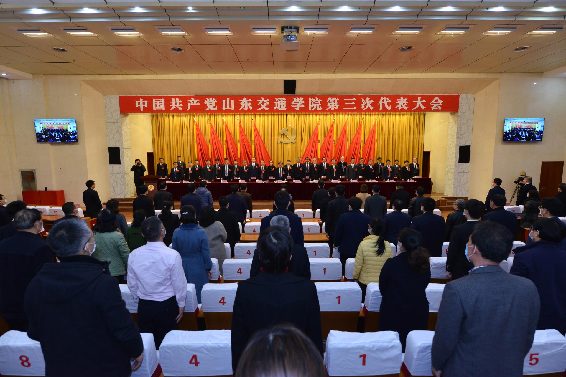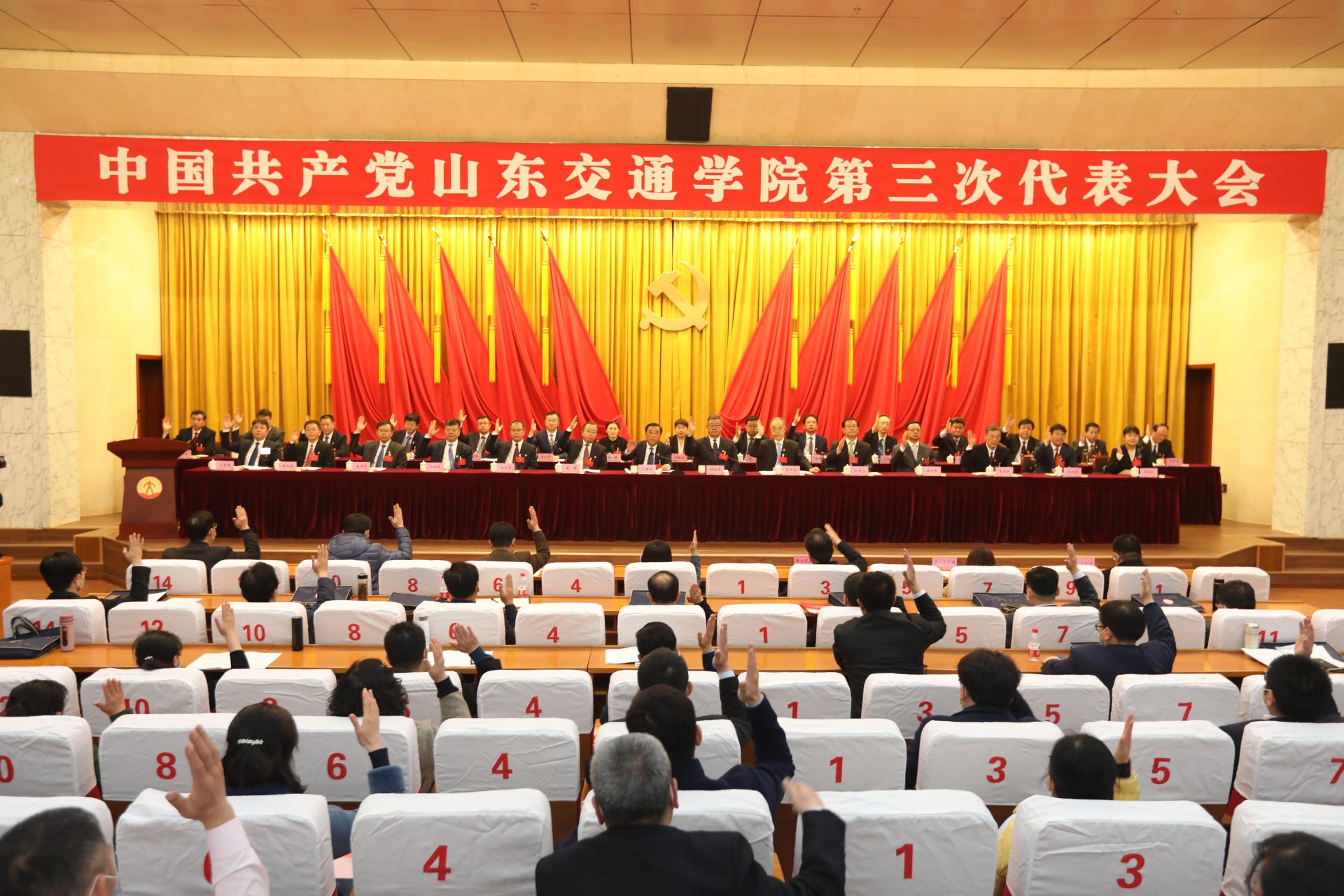在雄壮的《国际歌》乐曲中,中国共产党山东交通学院第三次代表大会胜利闭幕。