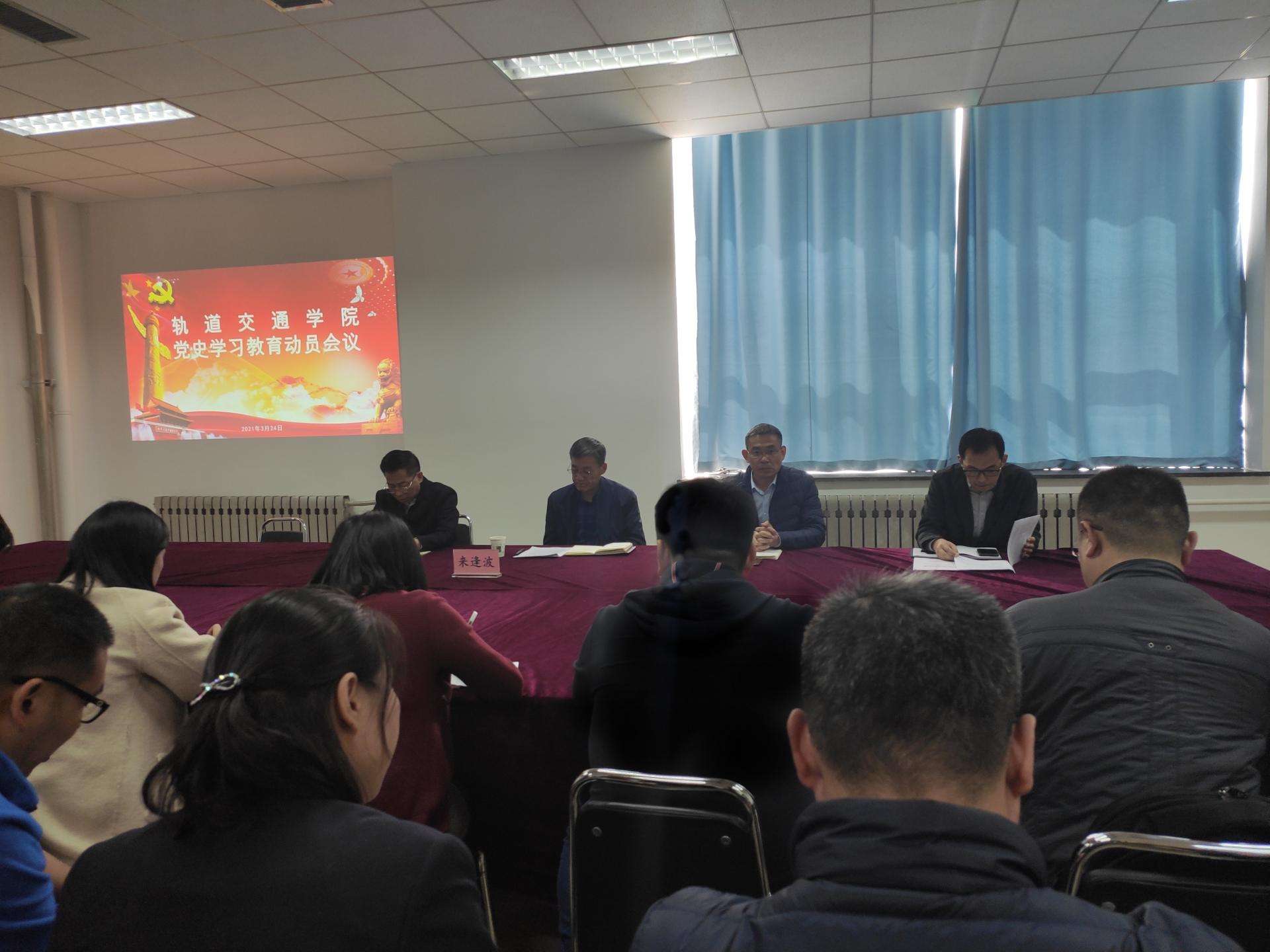 在轨道交通学院党史学习教育动员大会上,来逢波要求学院全体党员同志要认真领会、深刻理解党史学习教育的重大意义,增强党史学习教育的思想自觉和行动自觉,把党史学习教育精神落实到贯彻学校第三次党代会精神、建设高水平应用型交通大学的具体举措上来,在学科建设、人才培养、社会服务等方面展现轨道交通学院的使命担当。