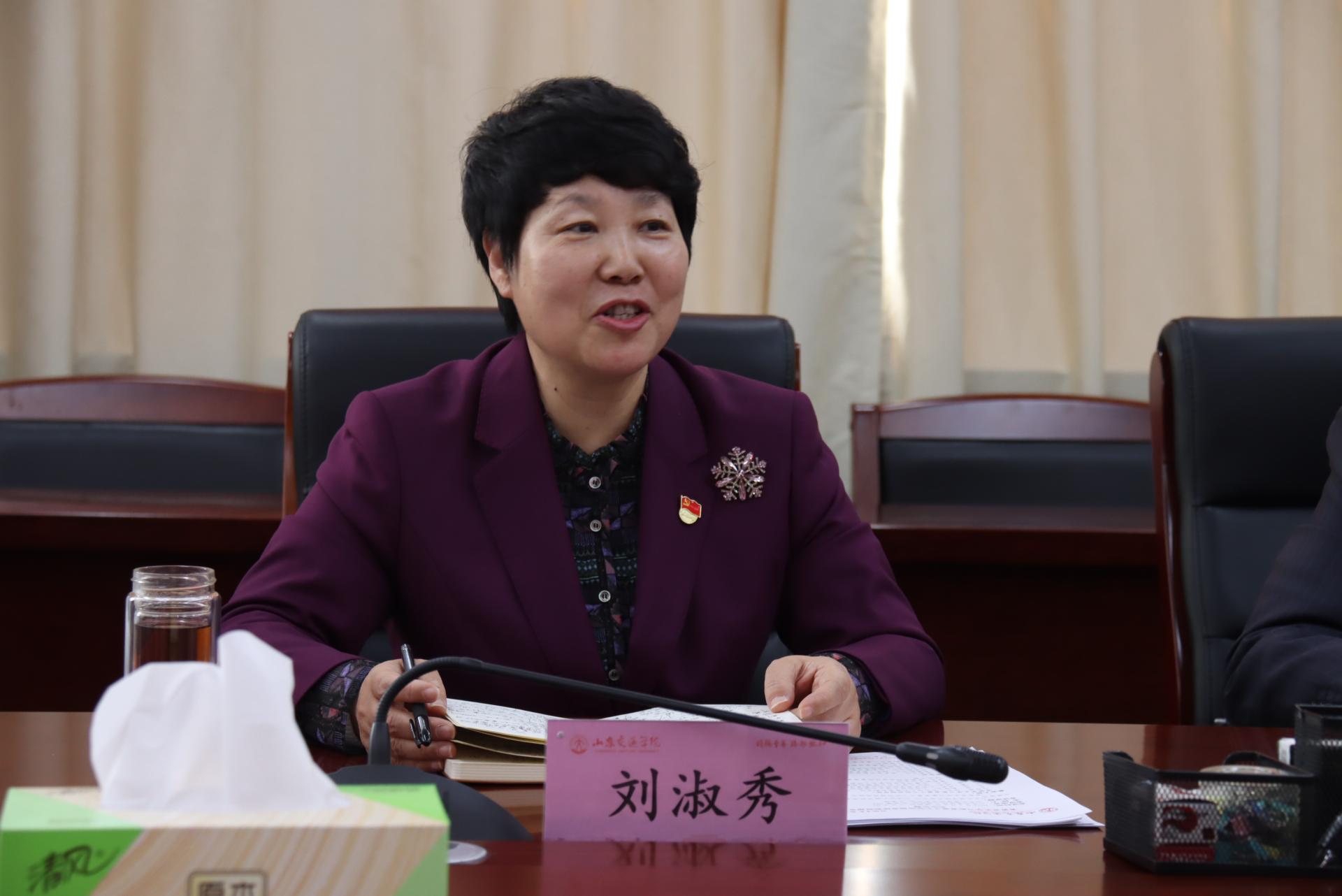 4月1日,省委党史学习教育第十七巡回指导组组长、临沂市人大常委会副主任、党组成员、市总工会主席刘淑秀,指导组副组长、山东财经大学正处级组织员齐浚,指导组成员马锴、王勇、苏睿、周慧等莅临我校指导党史学习教育工作并召开对接汇报会。学校党委书记王焕斌,党委副书记、院长陈松岩,党委副书记李贞涛,党委委员、党委组织部部长田杰昌,党委委员、党委宣传部部长周颜玲出席会议。