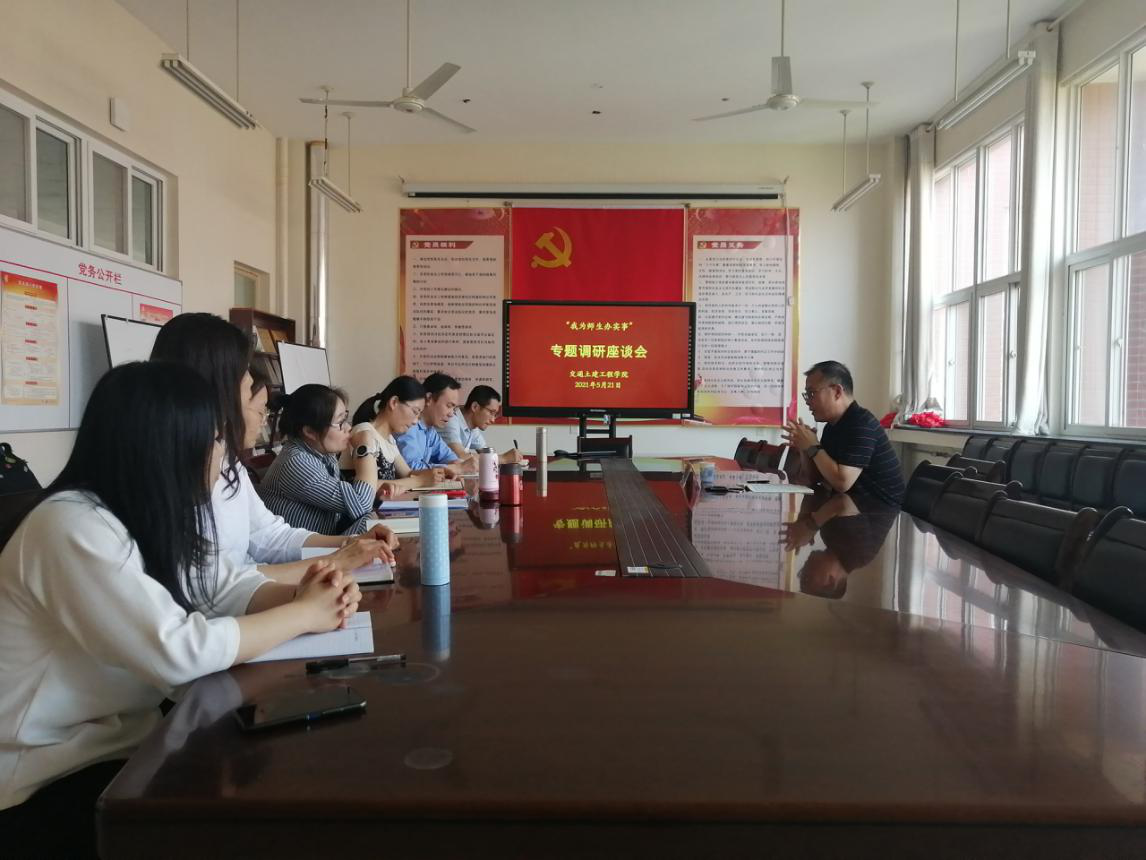 5月21日,党委副书记李贞涛到交通土建工程学院开展调研,与港口与航道工程系教师进行座谈交流,详细了解了港口与航道工程系教学科研、师资队伍、科研团队、专业建设和发展情况,听取了与会教师在教学科研等方面的意见建议。他对港口和航道工程系专业建设、教学科研等方面取得的成绩给予肯定,要求大家一是要坚持立德树人根本任务,加强团队和专业建设,构建应用型人才培养体系,培养出更多优秀学子;二是学校第三次党代会胜利召开以来,学校发展进入了新阶段,新阶段要有新作为,对专业建设、科技创新方面要有目标,完善实验平台,集中力量培育重大成果;三是要加强对外交流服务,勇于走出去,多参加学术交流和社会服务,为地方经济社会发展贡献交院力量;四是专业建设要紧跟行业发展,结合“一带一路”建设,采取有效措施突破瓶颈,为融入国际交流合作创造条件。