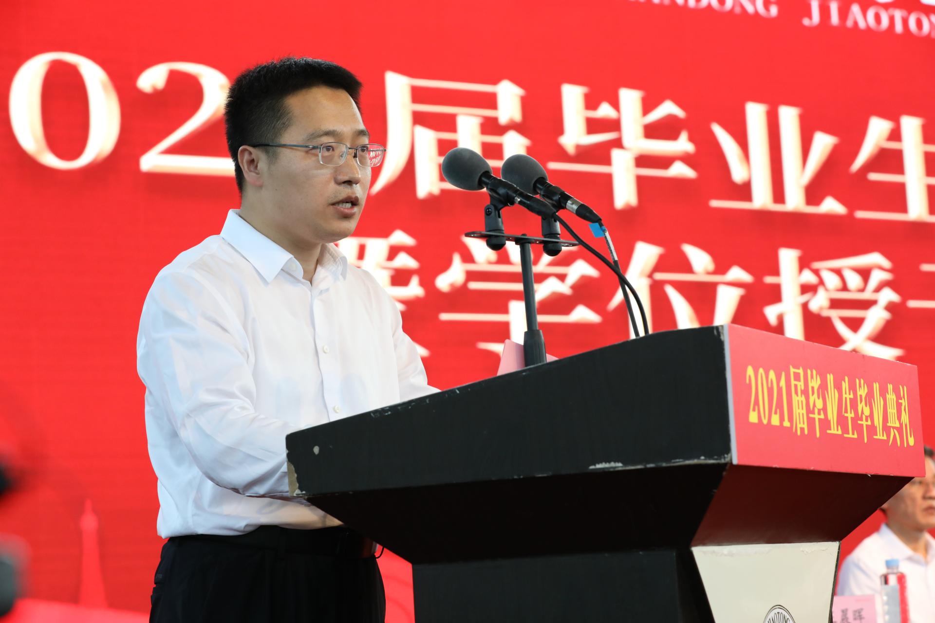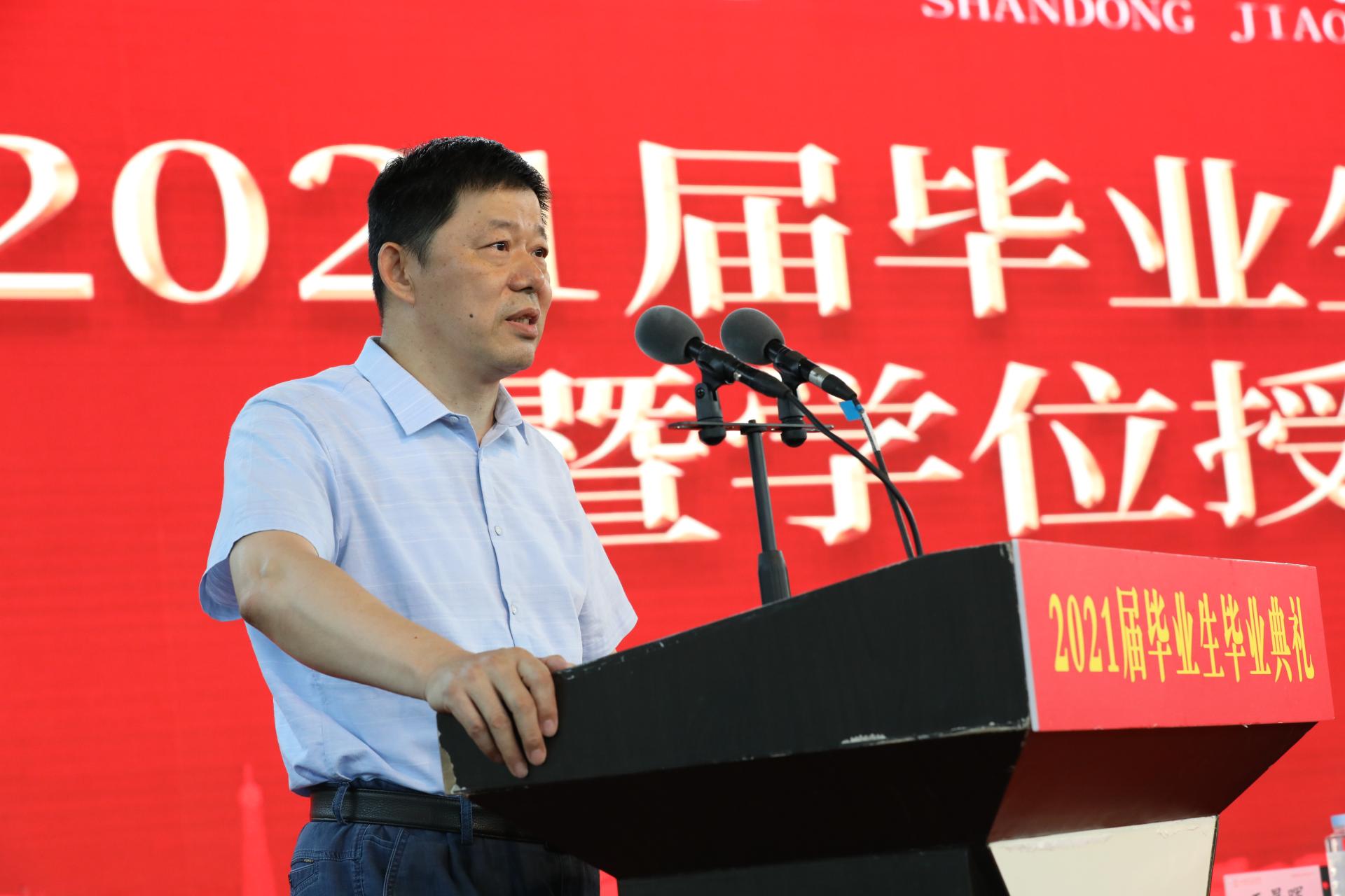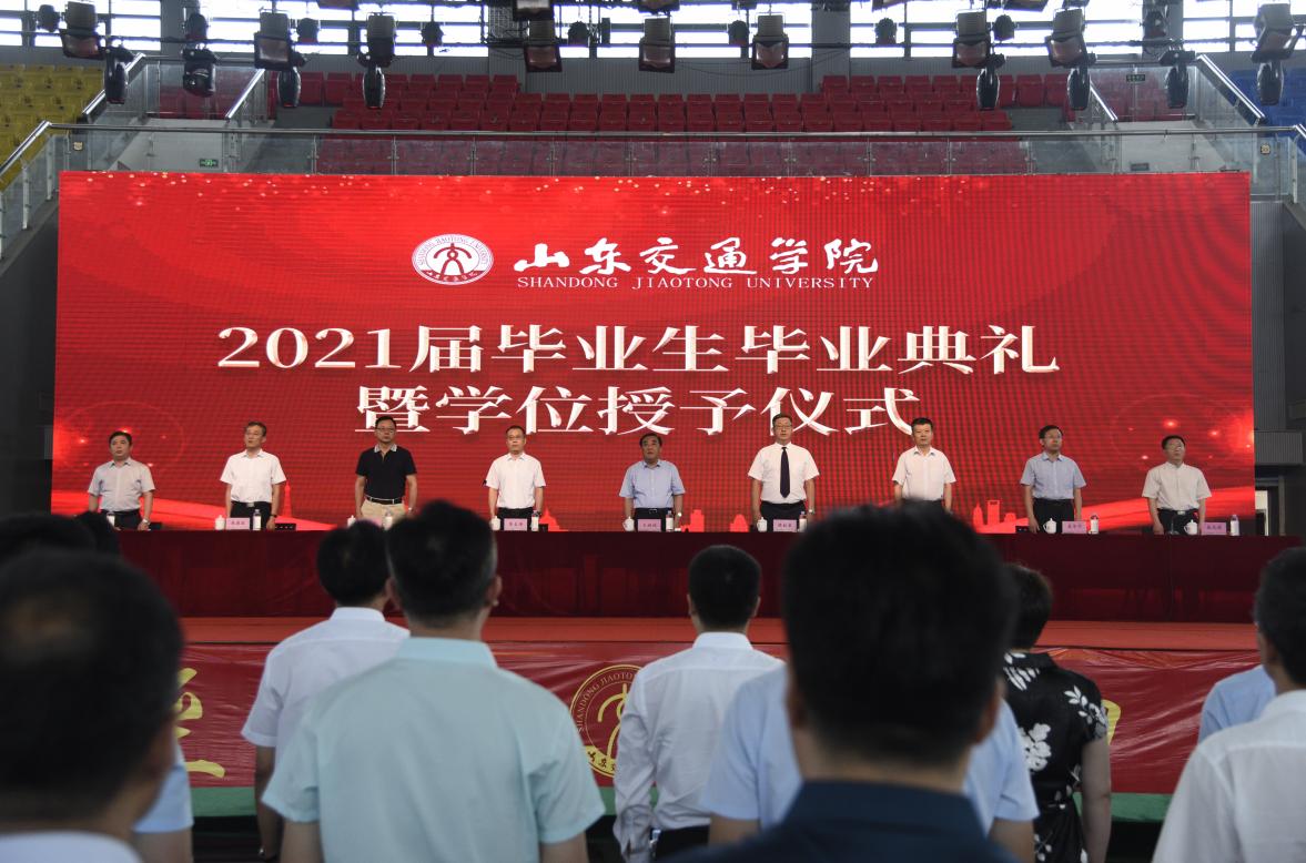 6月23日下午,学校2021届毕业生毕业典礼暨学位授予仪式在长清校区体育馆举行。党委书记王焕斌,党委副书记、院长陈松岩,党委副书记李贞涛,党委委员、纪委书记、监察专员刘世杰,党委委员、副院长曲同军、姜华平、来逢波、张化祥,党委委员、党委办公室(学校办公室)主任、党委统战部部长王晨晖出席典礼。典礼由李贞涛主持。