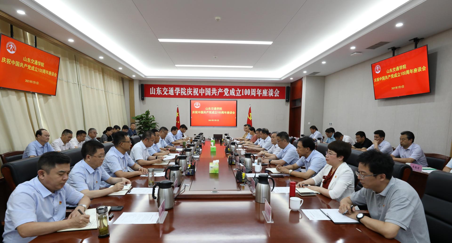 7月1日下午,学校在长清校区明德楼303会议室召开庆祝建党100周年座谈会。学校党委领导班子成员王焕斌、陈松岩、李贞涛、刘世杰、曲同军、姜华平、来逢波、张化祥、田杰昌、王晨晖、周颜玲出席座谈会。座谈会由党委副书记李贞涛主持。