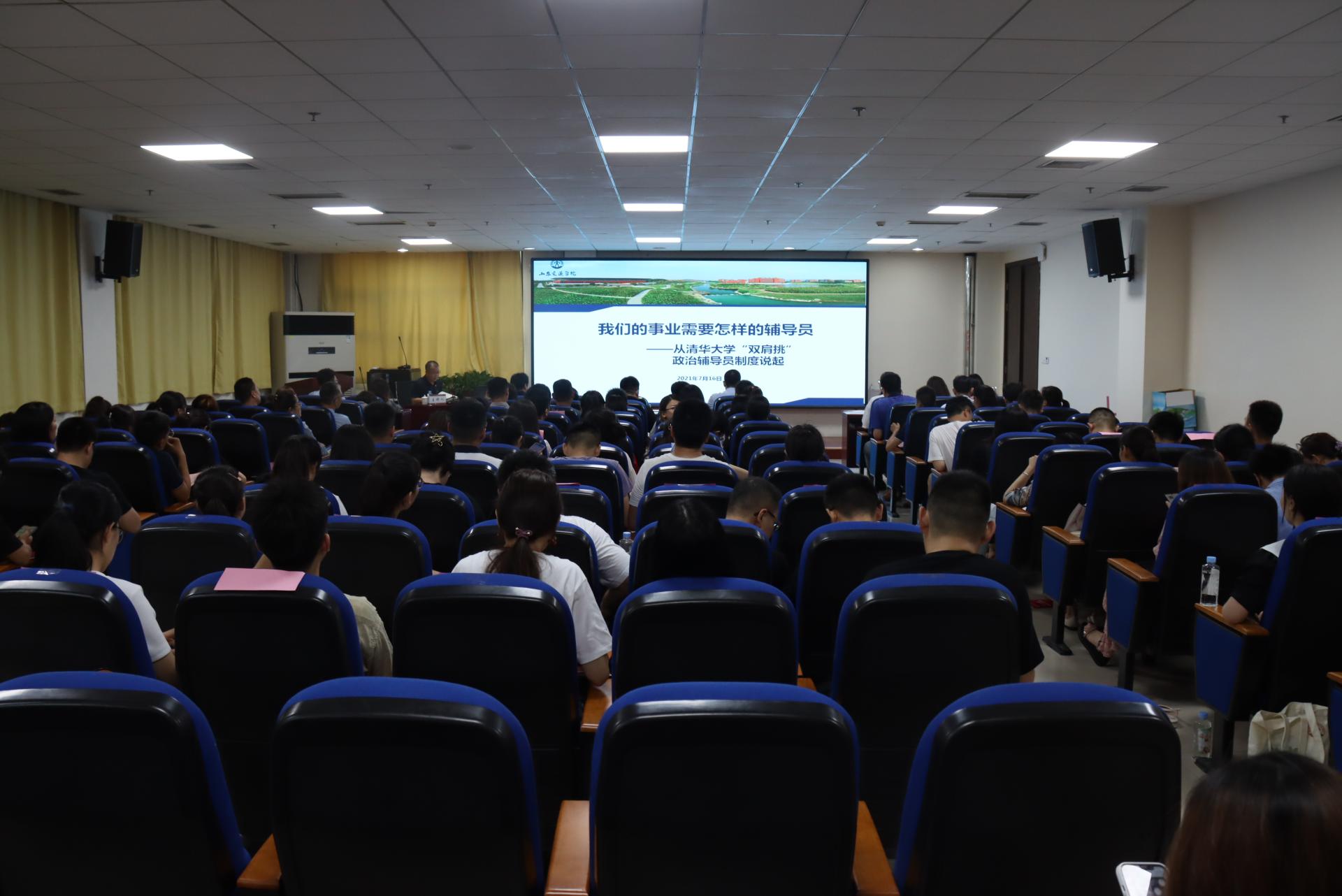 为深入学习贯彻习近平总书记“七一”重要讲话精神,推动党史学习教育与思想政治教育深度融合,7月16日至19日,学校在长清校区体育馆B112举行2021年度辅导员集中培训。党委副书记李贞涛出席活动并作专题报告。