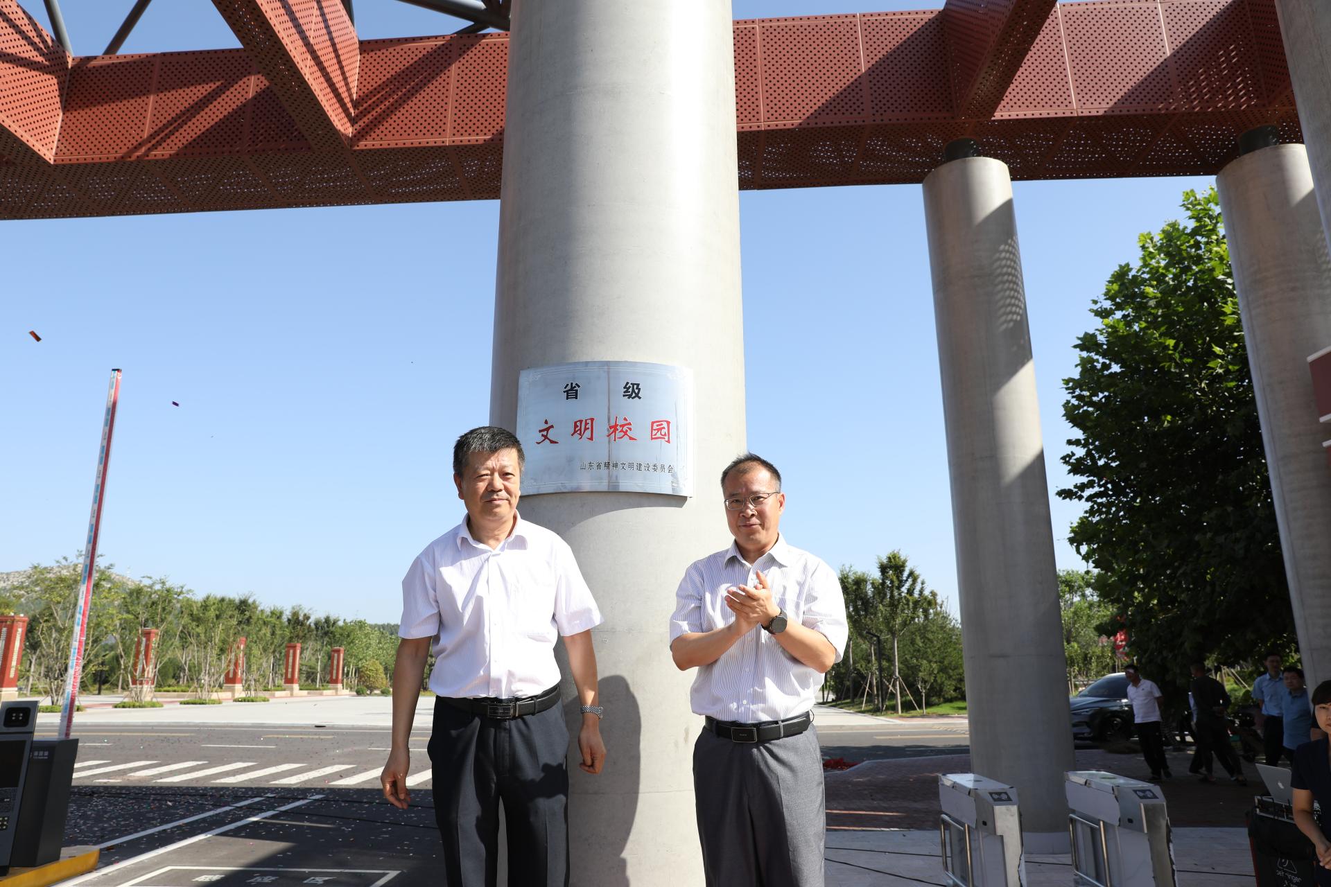党委副书记李贞涛,党委委员、纪委书记、监察专员刘世杰为省级文明校园挂牌。