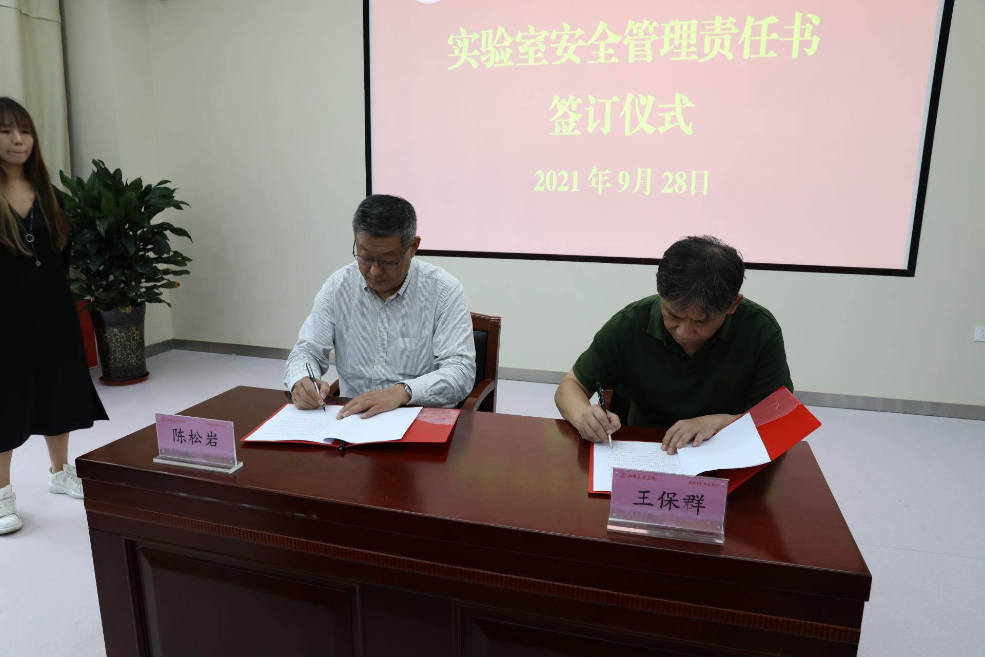 会议进行了实验室安全管理责任书签订仪式,陈松岩与个二级学院负责人代表签订实验室安全管理责任书。实验室安全工作领导小组办公室、二级学院代表汇报了2021年实验室安全工作情况。