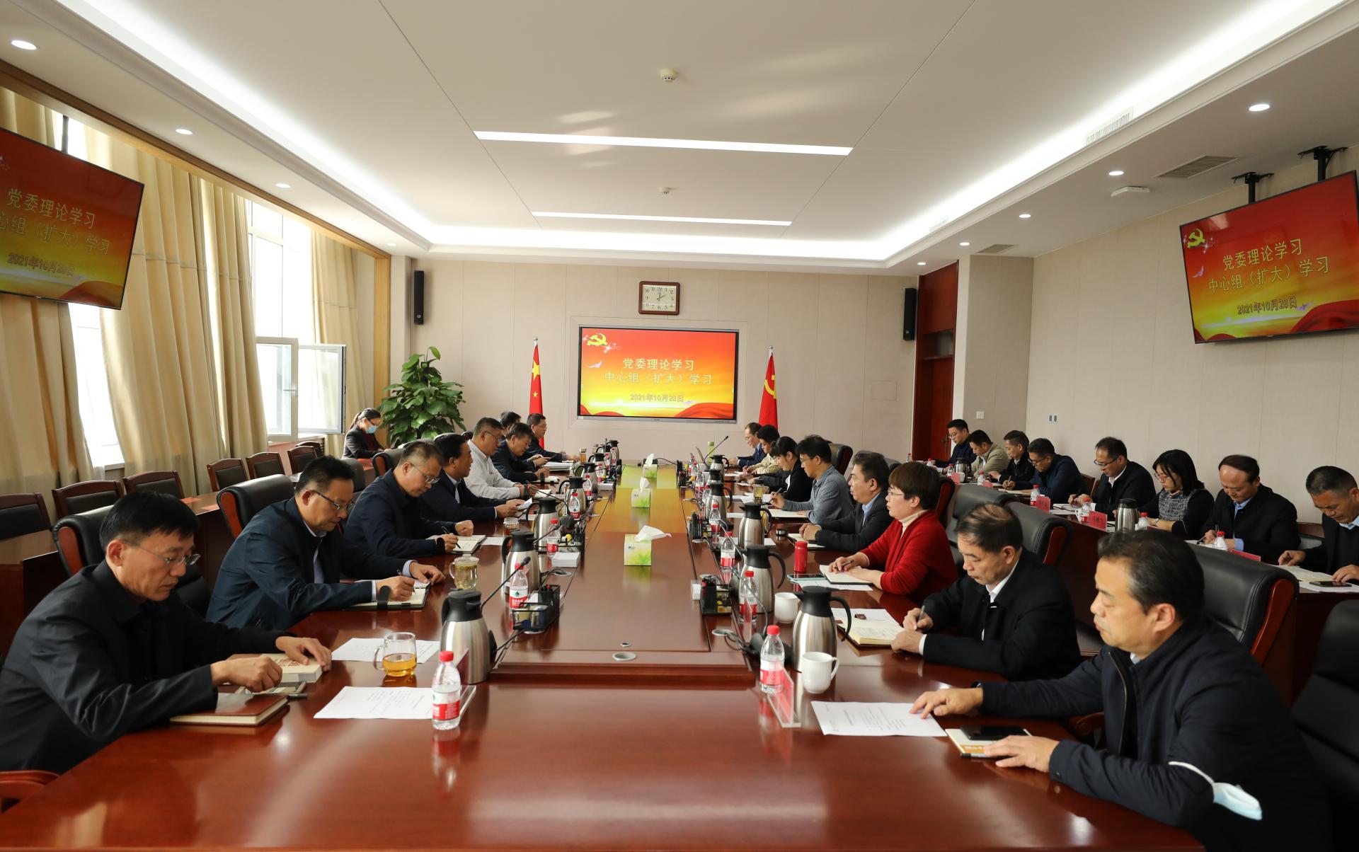 10月28日下午,学校党委理论学习中心组在长清校区明德楼303会议室举行2021年第十二次集体学习(扩大)。党委理论学习中心组成员王焕斌、陈松岩、李贞涛、刘世杰、曲同军、姜华平、来逢波、张化祥、田杰昌、王晨晖、周颜玲参加学习。党委书记王焕斌主持学习活动。