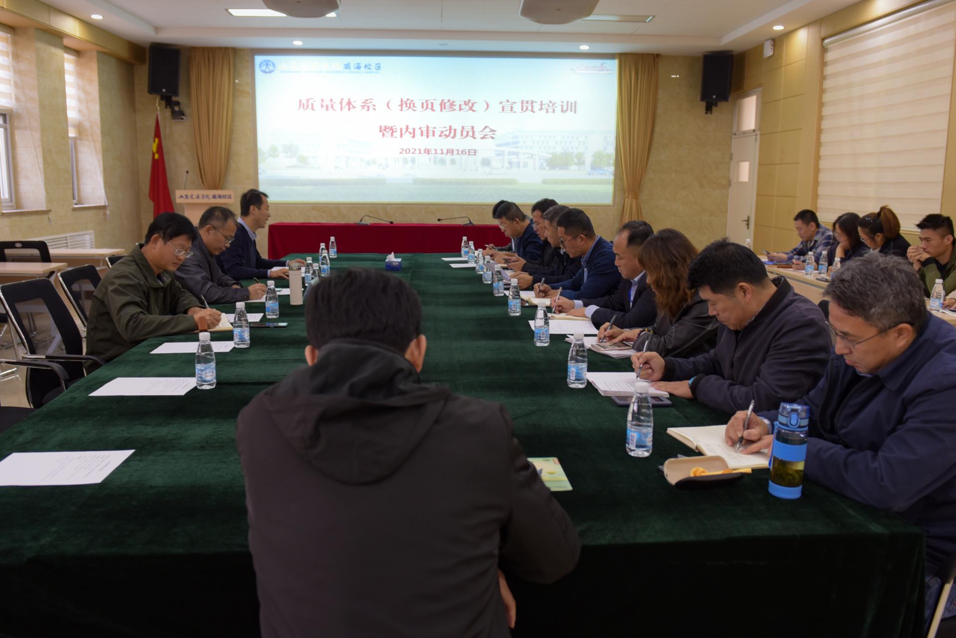 威海校区管理办公室负责人,学校各受控部门负责人、内部审核员和质量管理员参加会议。