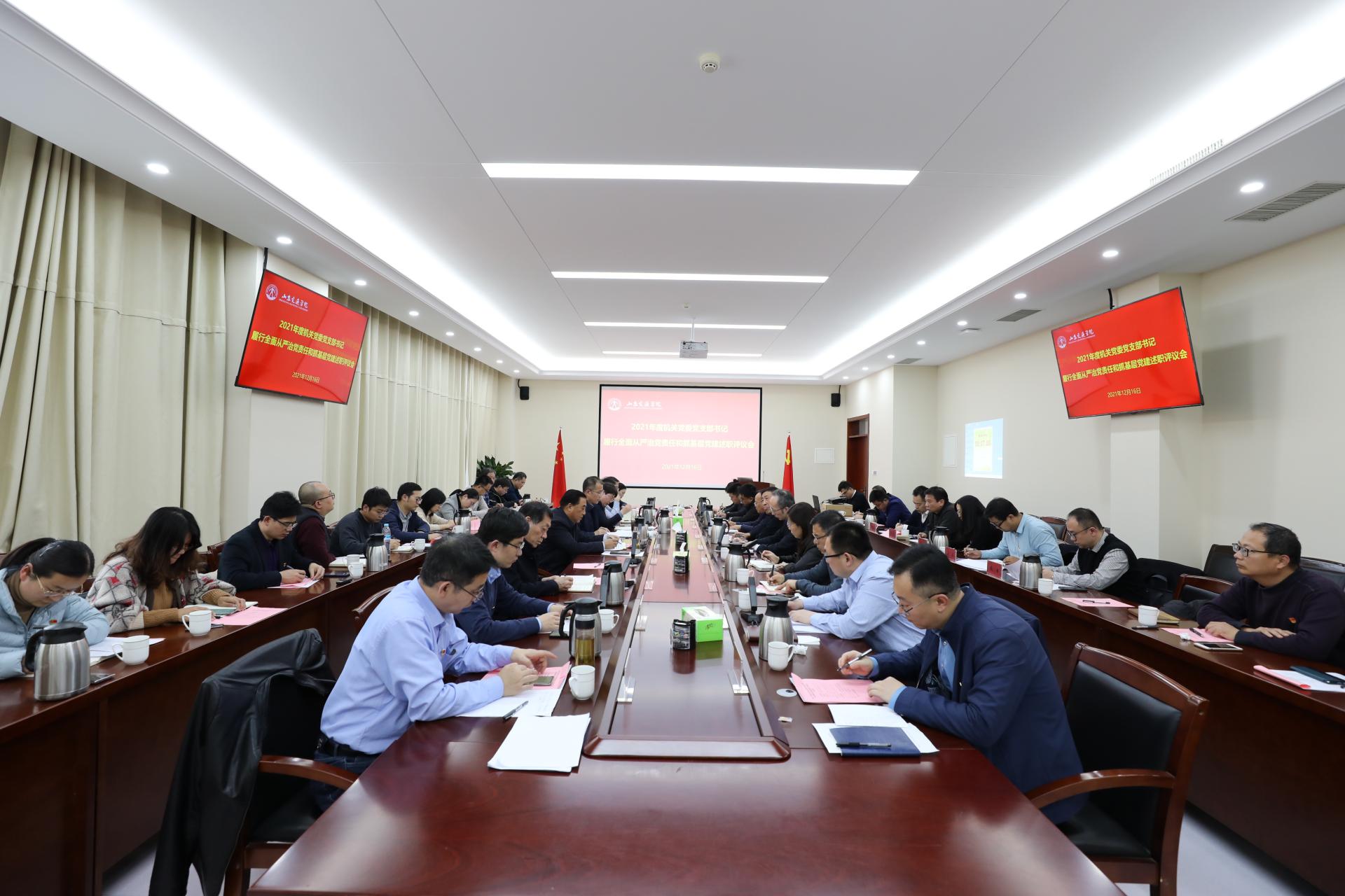 12月16日下午,机关党委举行2021年度机关党支部书记履行全面从严治党主体责任和抓基层党建述职评议会。学校党委书记王焕斌,党委副书记李贞涛,党委委员、党委办公室(学校办公室)主任、党委统战部部长王晨晖出席会议。会议由机关党委书记闫荣双主持。