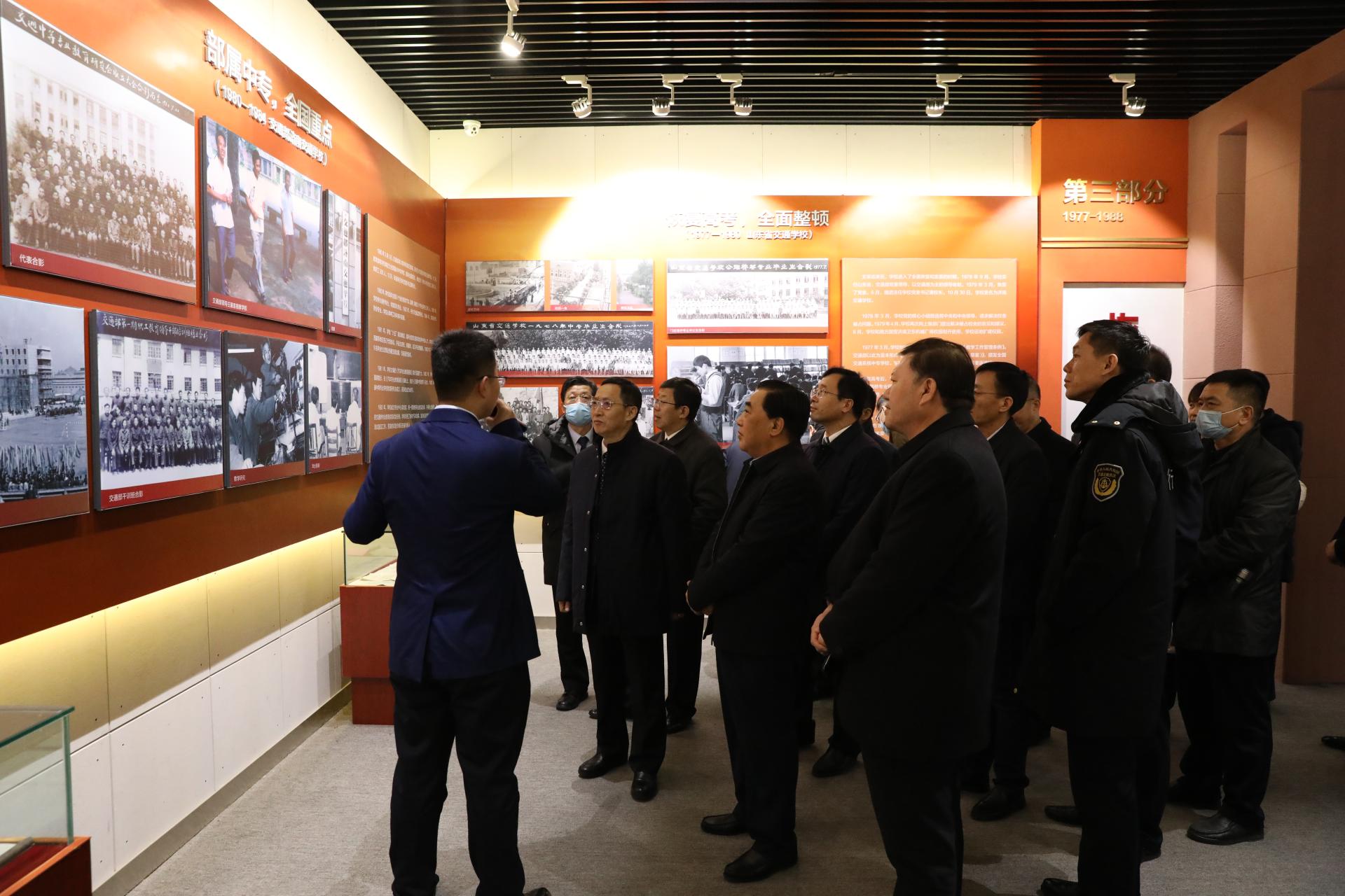 于洪亮一行先后参观了我校《共产党宣言》主题展、校史馆以及道路加速加载实验系统。调研过程中,调研组深入了解了学校打造《共产党宣言》主题展的初衷、馆藏版本情况,并在讲解员的介绍下依次参观了主题展5个单元,感悟马克思主义真理的力量。在校史馆,调研组认真听取了关于学校发展历程的介绍,了解了学校65年的艰苦创业史,对学校各个阶段取得的成绩给予肯定。调研组实地查看了学校自主研发的道路加速加载系统,观摩了该设备模拟车辆对道路的碾压状态、运转情况,在了解到该项目已经获得省技术发明一等奖以及投入应用于济青高速扩建等重大工程后,纷纷称赞我校的科技成果转换和服务社会能力。
