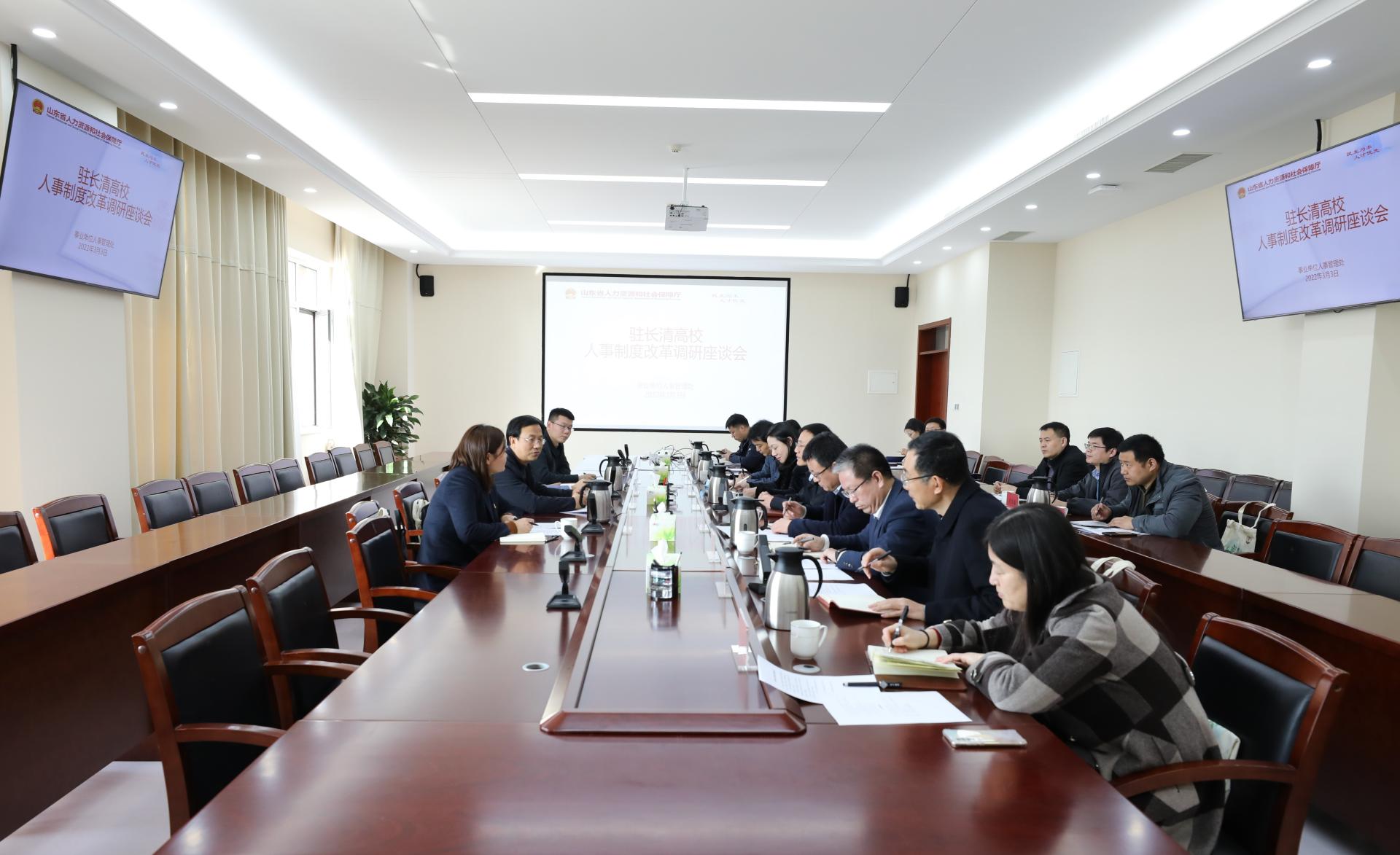 3月3日,山东省人力资源和社会保障厅事业单位人事制度改革驻长清高校调研座谈会在我校长清校区明德楼301会议室召开。省人社厅事业单位人事管理处处长邢军、副处长周刚,学校党委委员、副院长来逢波出席会议。
