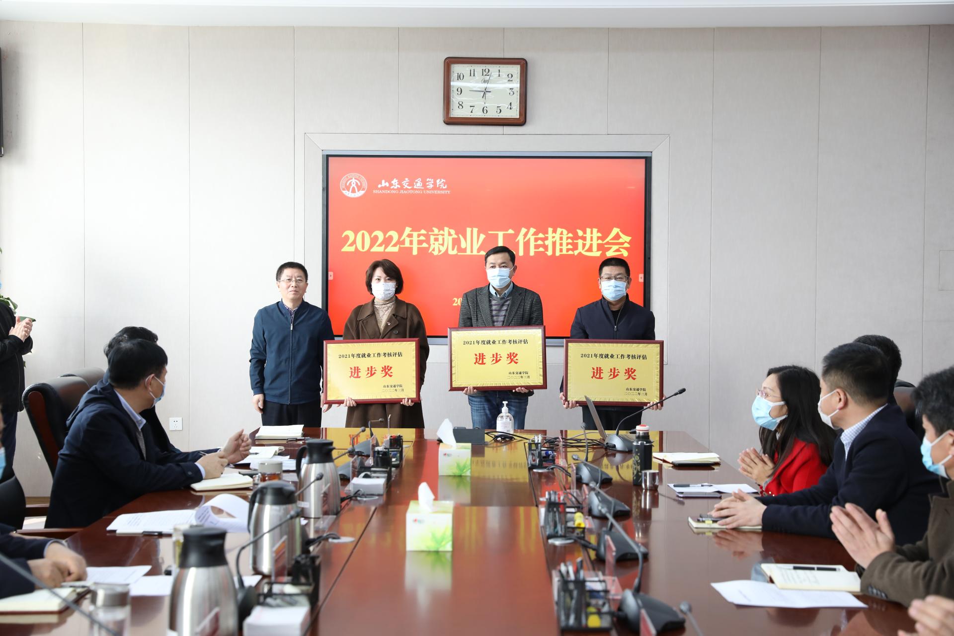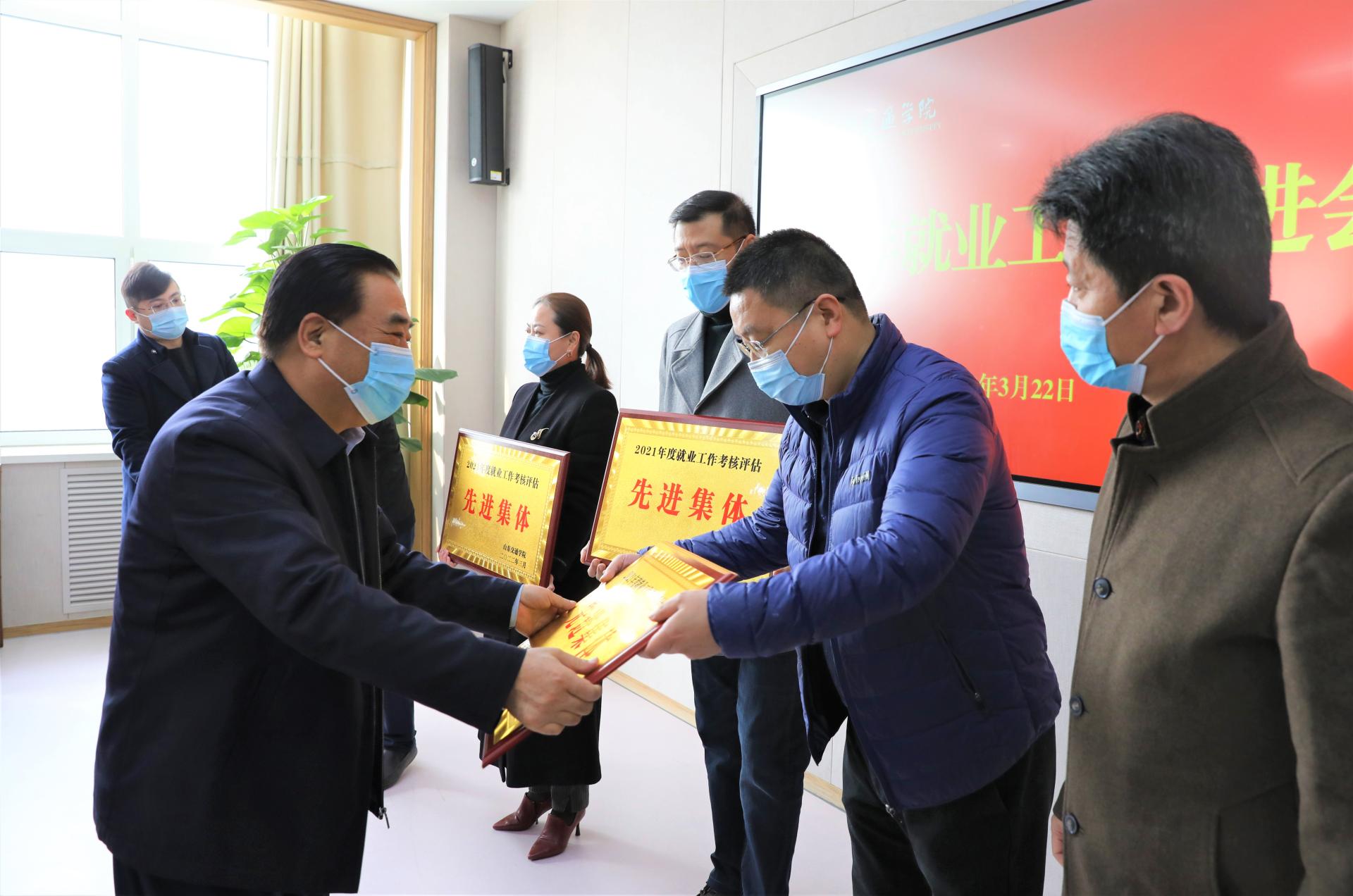 会议表彰了在2021年度就业工作中表现突出的先进单位和先进个人,授予交通与物流工程学院等6个学院“就业工作先进集体”荣誉称号,授予理学院等3个学院“就业工作进步奖” 荣誉称号,授予交通土建工程学院等6个学院“就业工作质量奖” 荣誉称号,授予刘阳等47位同志“就业工作先进个人”荣誉称号。