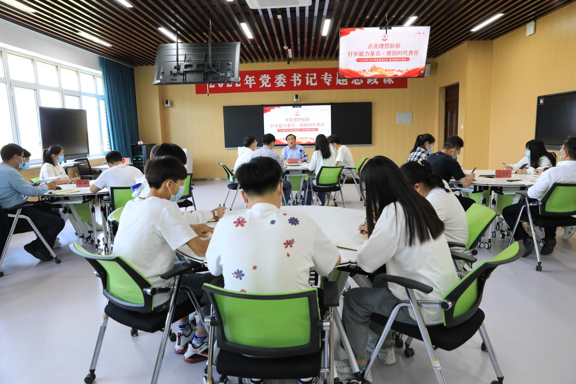 王焕斌从“新时代青年的时代际遇”“习近平总书记对青年学生的殷殷嘱托”“不忘初心跟党走,青春建功新时代”三个方面与同学们进行了交流。他通过解读《习近平与大学生朋友们》中的具体章节,以习近平总书记的青春故事为例,并结合我校优秀青年典型,以及个人成长、学习、工作的体会,用平实的语言、详实的资料给同学们上了一堂生动活泼的思政课。他结合2022年中国共青团成立100周年、当前国际形势、我国改革开放四十多年来翻天覆地的变化,勉励同学们珍惜伟大时代、坚定理想信念,把握青春时光、刻苦钻研学习,勇于实践锻炼、做到知行合一,锤炼品德修为、矢志艰苦奋斗。