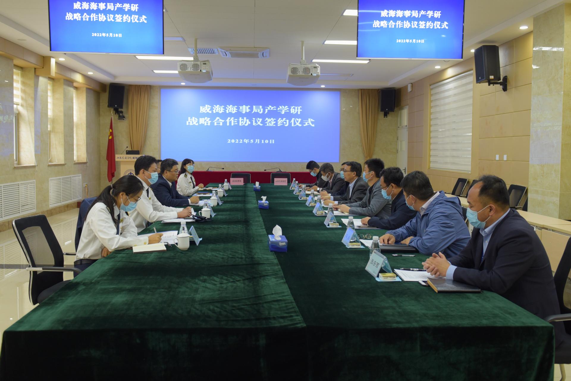 5月10日,威海海事局党委书记、局长张向上一行到我校威海校区签署产学研战略合作协议并交流座谈。学校党委委员、副院长姜华平出席签约仪式并主持召开座谈会。