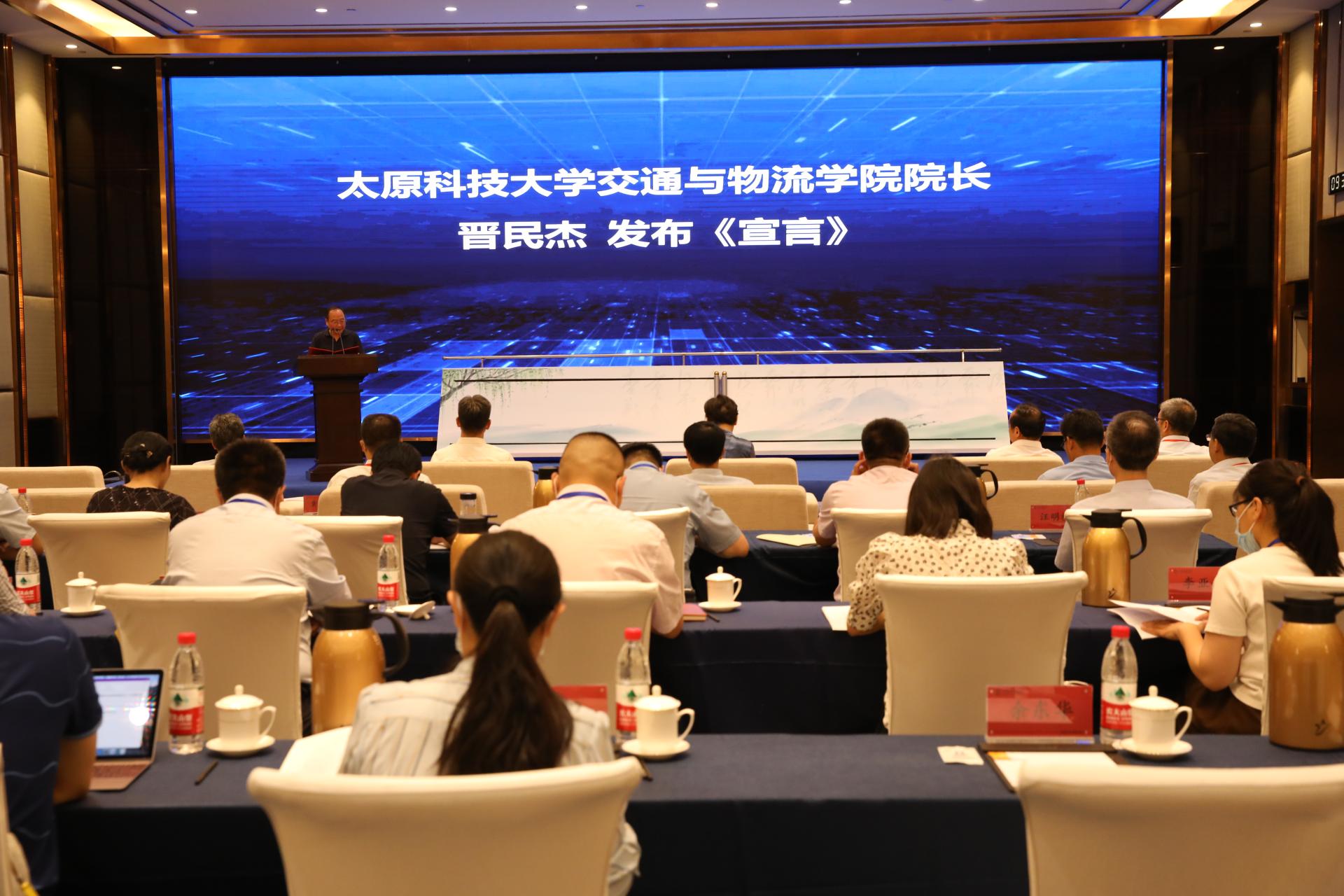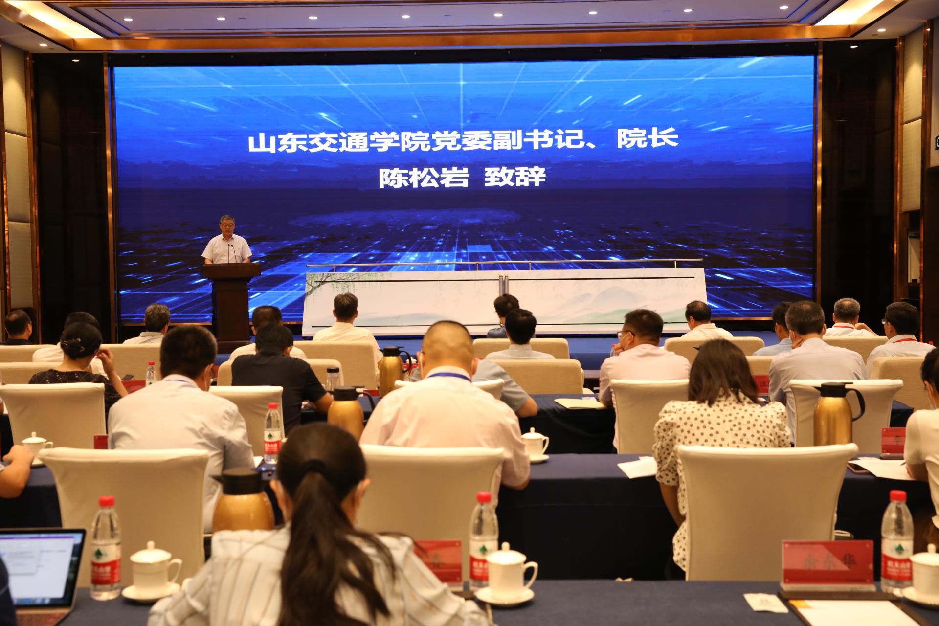 省教育厅副厅长孙晓筠,省科学技术厅党组成员、副厅长潘军,省交通运输厅党组成员、副厅长司家军出席会议并致辞;长安大学党委副书记、校长沙爱民,兰州交通大学副校长陈兴冲,内蒙古大学党委委员、交通学院党委书记孙智凭,太原科技大学交通与物流学院院长晋民杰;山东省海洋科学研究院党组成员、副院长黄祖亮;山东交通学院党委书记王焕斌,党委副书记、院长陈松岩,党委委员、副院长来逢波,党委委员、党委办公室(学校办公室)主任、党委统战部部长王晨晖;以及济南市教育局、科技局,长清区政府、交通运输局,济南新旧动能转换起步区相关领导出席成立大会。会议由王焕斌主持。