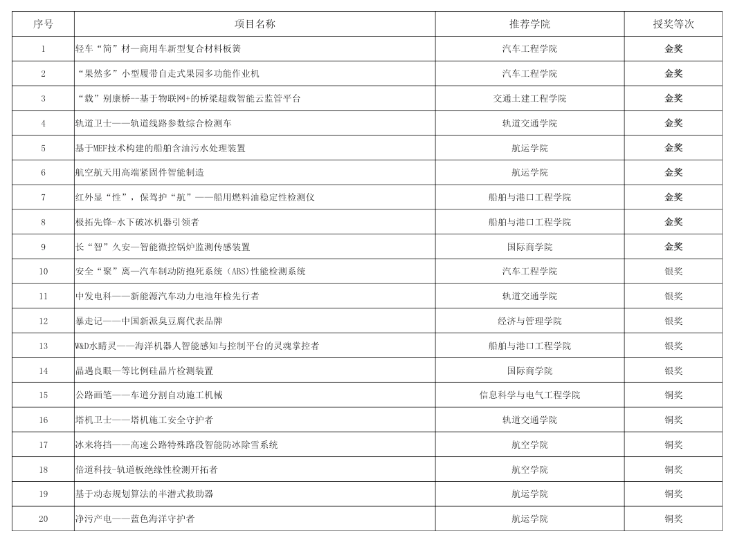 本次大赛我校共推荐34个项目参加省赛,15个项目入围金银奖决赛。最终,9个项目获得金奖,5个项目获得银奖,6个项目获得铜奖。
