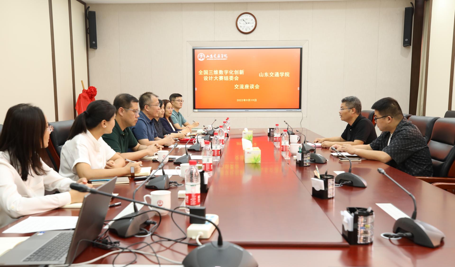 9月19日下午,全国三维数字化创新设计大赛(简称全国3D大赛)组委会副秘书长、全国3D/VR技术推广服务与教育培训联盟秘书长、3D动力常务副总裁刘晓青,山东赛区执行秘书长许振涵来我校交流座谈。座谈会在明德楼302会议室举行,学校党委副书记李贞涛出席会议。会议由艺术与设计学院党委书记刁艳飞主持。