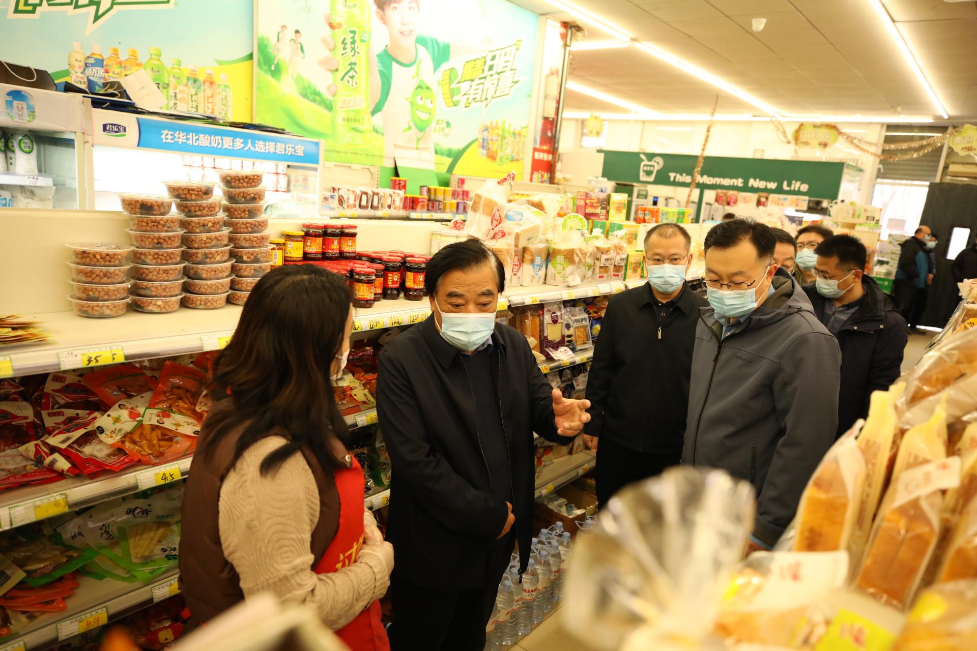 检查中,王焕斌、李贞涛一行现场查看了校门管理、校内快递点、核酸检测点、餐厅、超市、心理健康咨询中心等,认真查看了货物配送、人员进出、环境消杀等记录,听取了相关部门负责人关于疫情防控工作的汇报。