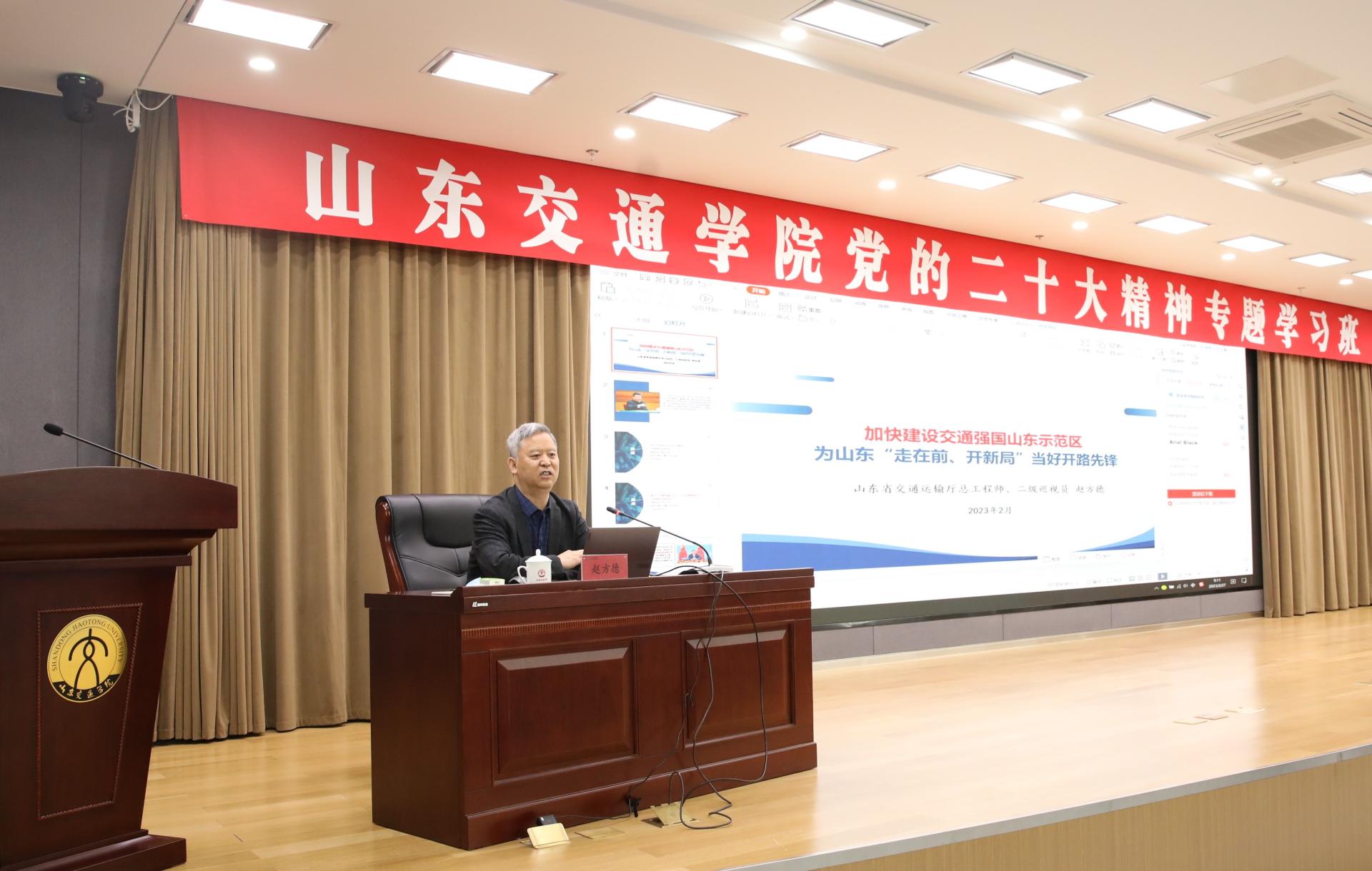 培训期间,山东省交通运输厅二级巡视员、总工程师赵方德为参训学员作了《加快建设交通强国山东示范区,为山东“走在前、开新局”当好开路先锋》辅导报告;中国浦东干部学院教授,长三角研究院副院长赵泉民作了《以中国式现代化全面推进中华民族伟大复兴——学习领会党的二十大精神内涵》辅导报告。学员代表张腾飞、曹凤萍、屈展、高健、张强结合工作实际汇报交流了学习心得体会和思考。