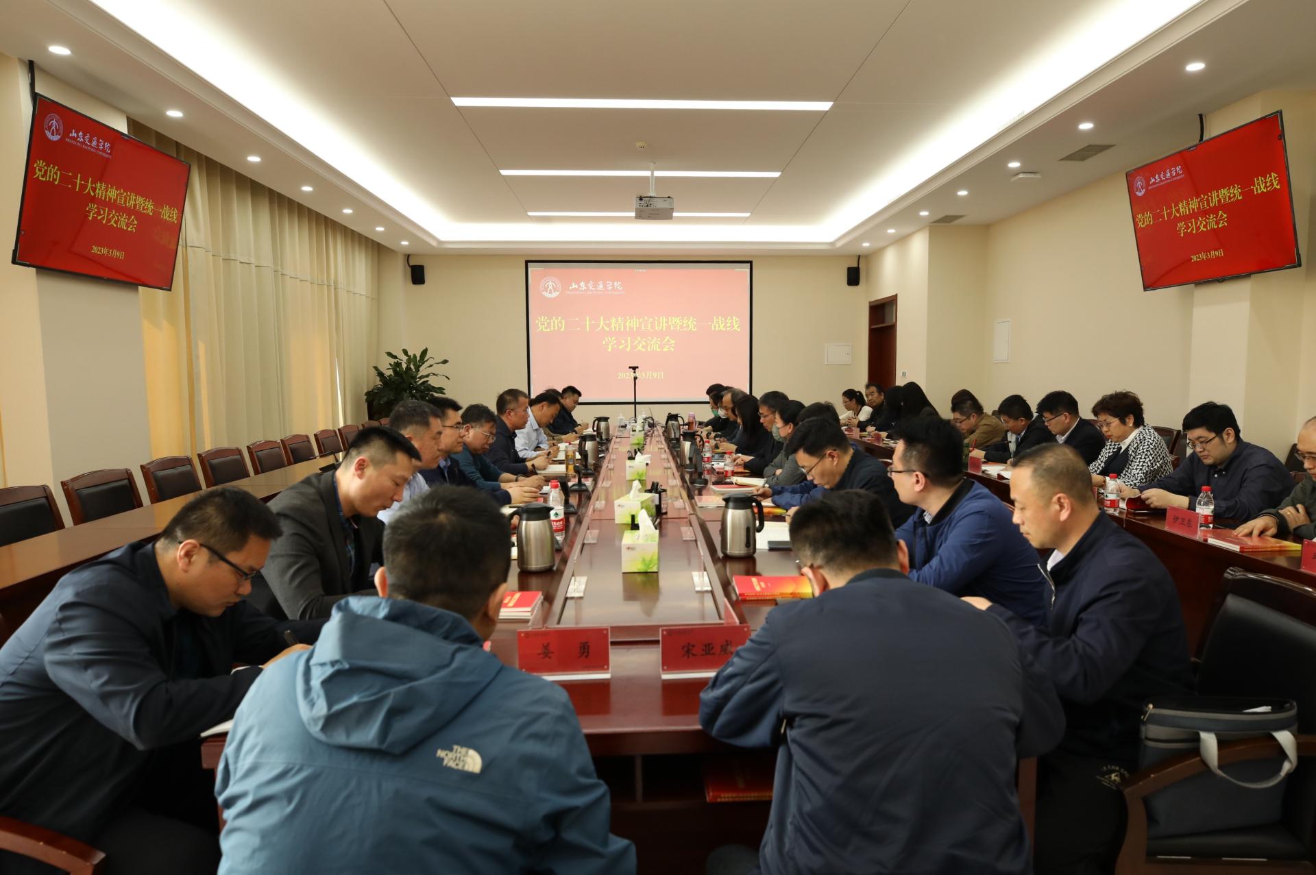 3月9日,学校党委在长清校区明德楼301会议室召开党的二十大精神宣讲暨统一战线学习交流会。学校党委副书记李贞涛作《踔厉奋发 以中国式现代化推进中华民族伟大复兴》专题宣讲,并与学校无党派人士交流。会议由党委统战部常务副部长刘庆波主持。