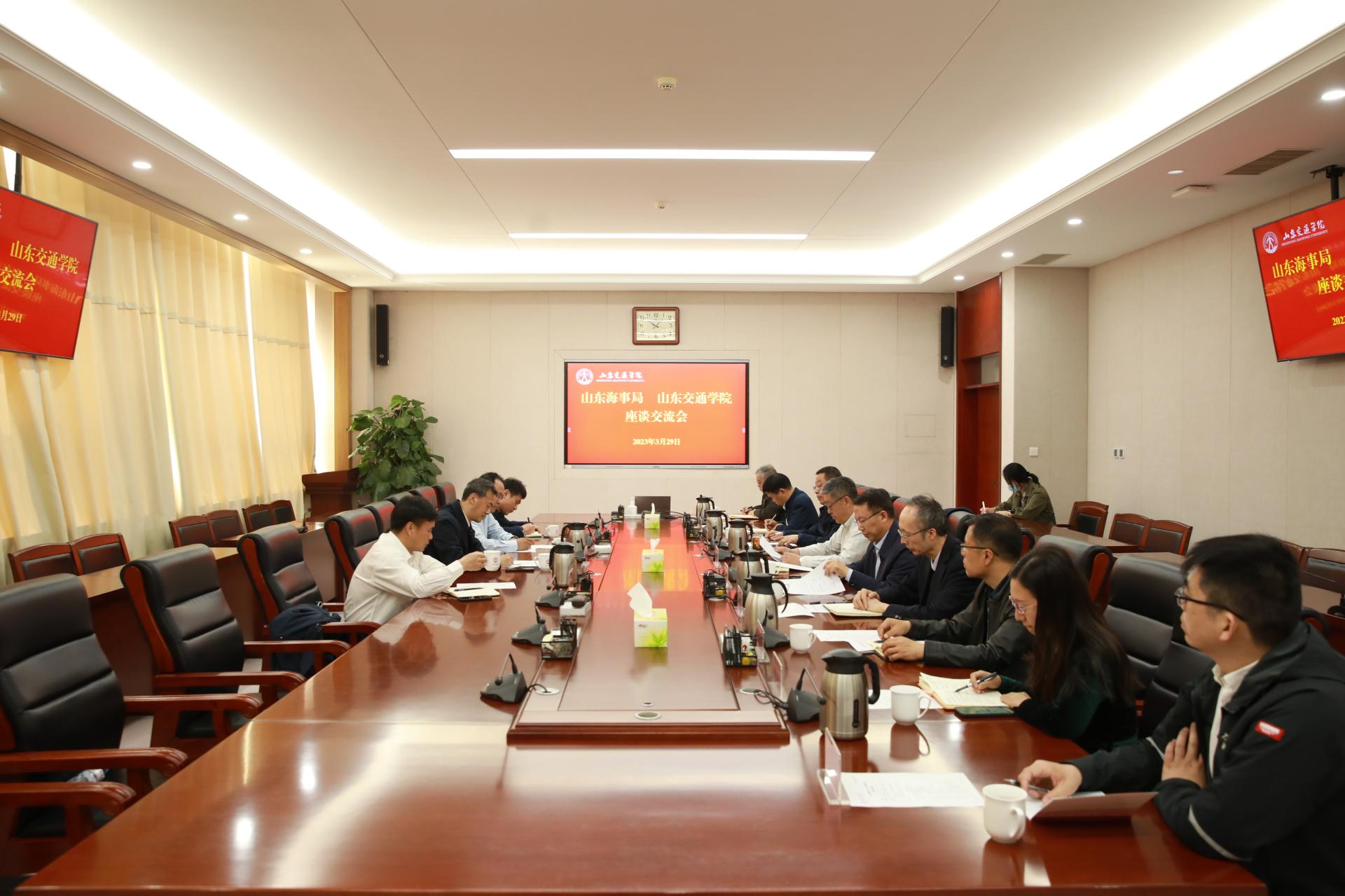 3月29日上午,山东海事局党组书记、局长王海宇一行就航海教育、校地合作等相关工作来校走访调研。座谈交流会在长清校区明德楼303会议室举行。学校党委副书记、院长陈松岩,党委委员、副院长姜华平出席会议。会议由姜华平主持。