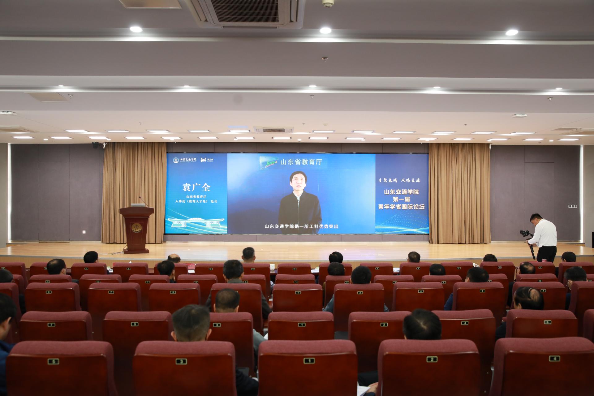 3月31日上午,学校在长清校区举办以“才聚泉城 凤鸣交通”为主题的第一届青年学者国际论坛。山东省教育厅人事处(教育人才处)处长袁广全通过线上方式出席主论坛。中共济南市委组织部人才工作一处处长王福岭;学校党委书记王焕斌,党委副书记、院长陈松岩,党委副书记李贞涛,党委委员、副院长姜华平,党委委员、副院长来逢波,党委委员、党委宣传部部长周颜玲出席主论坛。主论坛由陈松岩主持。