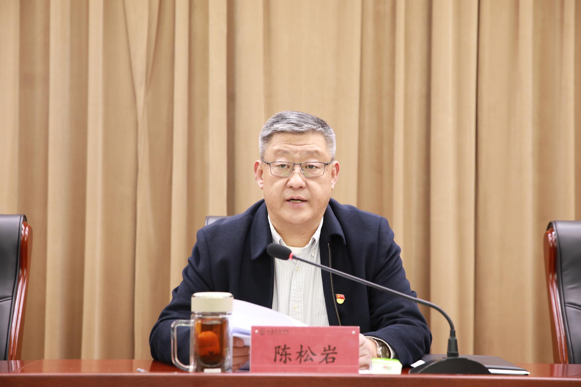 陈松岩在主持中指出,要进一步提高思想认识,第一时间做好会议精神的传达贯彻,紧密结合工作实际,认真谋划落实好本年度本部门全面从严治党工作;要进一步压紧压实责任,细之又细推进全面从严治党工作高质量落实,为学校的建设发展提供坚强政治保证;要进一步提升履职能力,高标准高效率推动学校高质量发展,找准全面从严治党的发力点,以“11+38”项年度重要工作为重点,以全面从严治党新成效引领保障学校高质量特色发展。