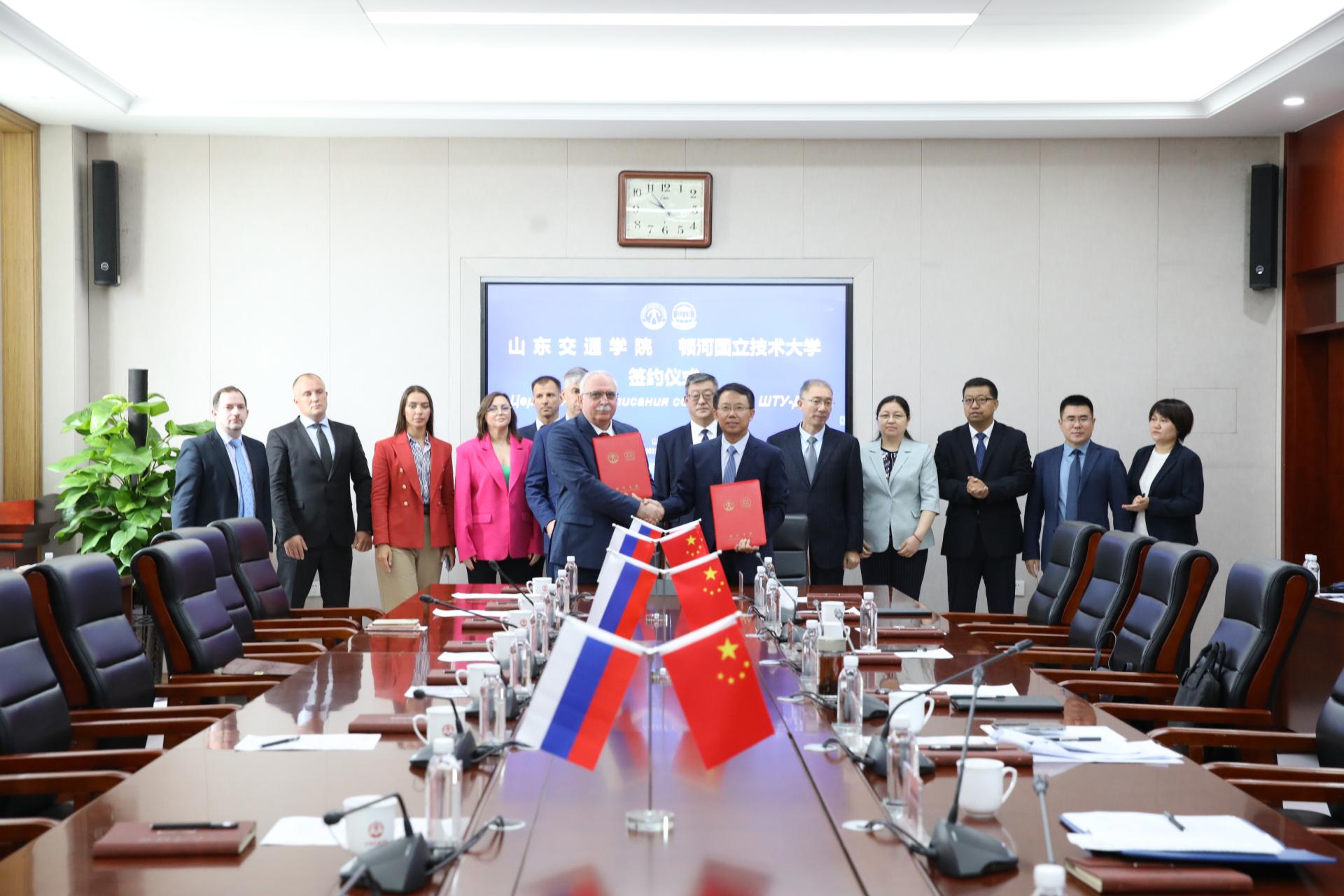 随后,顿河国立技术大学副校长阿列克谢·别斯克贝里内与姜华平签署了共同推进中俄双语国际传播能力战略合作协议。根据协议,我校与顿河国立技术大学将充分发挥各自优势,在经验交流和完善汉语教学、俄语教学方法方面进行合作,打造良好的汉语、俄语国际学习环境,为双方师生的互访互派、留学进修等创造条件,促进汉语和俄语传播,推动双方在跨文化、教育和科学联合项目领域的合作。