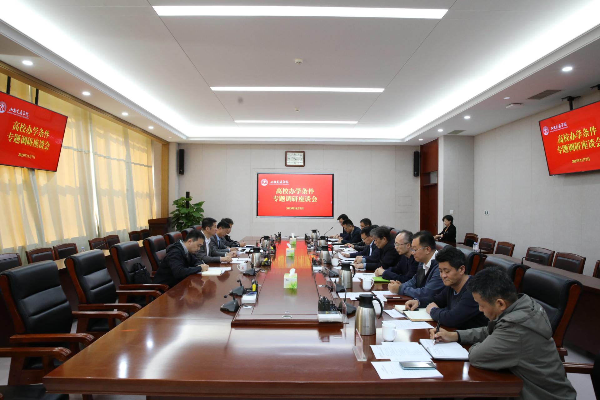发展规划与学科建设处负责人从在校生规模、教师队伍、校舍建筑、图书资源等总体情况,教学和实验实训等基础设施利用情况,学校“十四五”发展规划执行情况等多个方面汇报了我校办学基本条件相关情况。与会人员重点围绕学校办学条件中存在的问题、困难、制约因素以及改善办学条件的建议等方面进行了深入交流探讨。