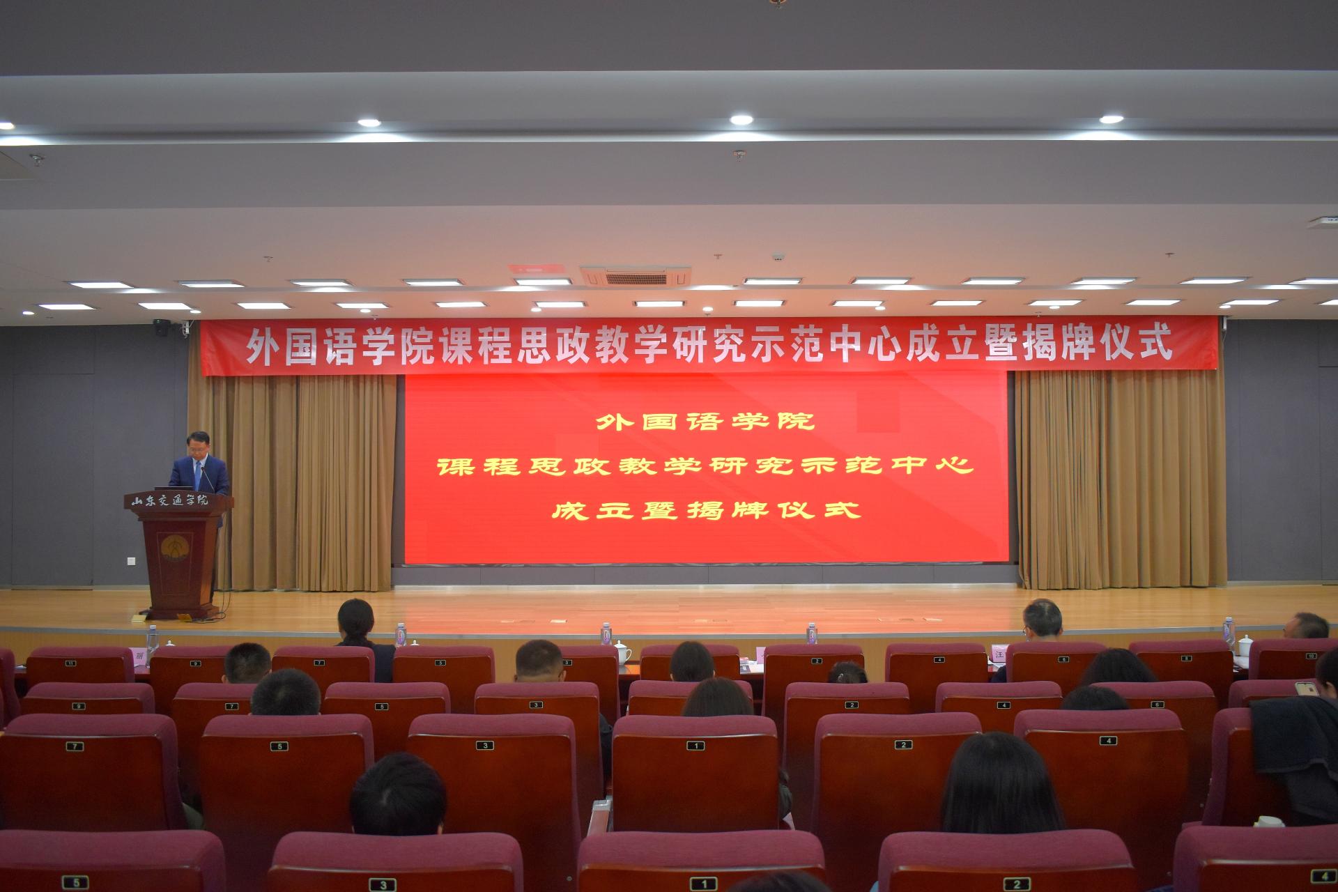 11月8日下午,学校外国语学院课程思政教学研究示范中心成立暨揭牌仪式在长清校区明德楼101报告厅举行。学校党委委员、副院长姜华平出席仪式。活动由外国语学院副院长吴丽主持。