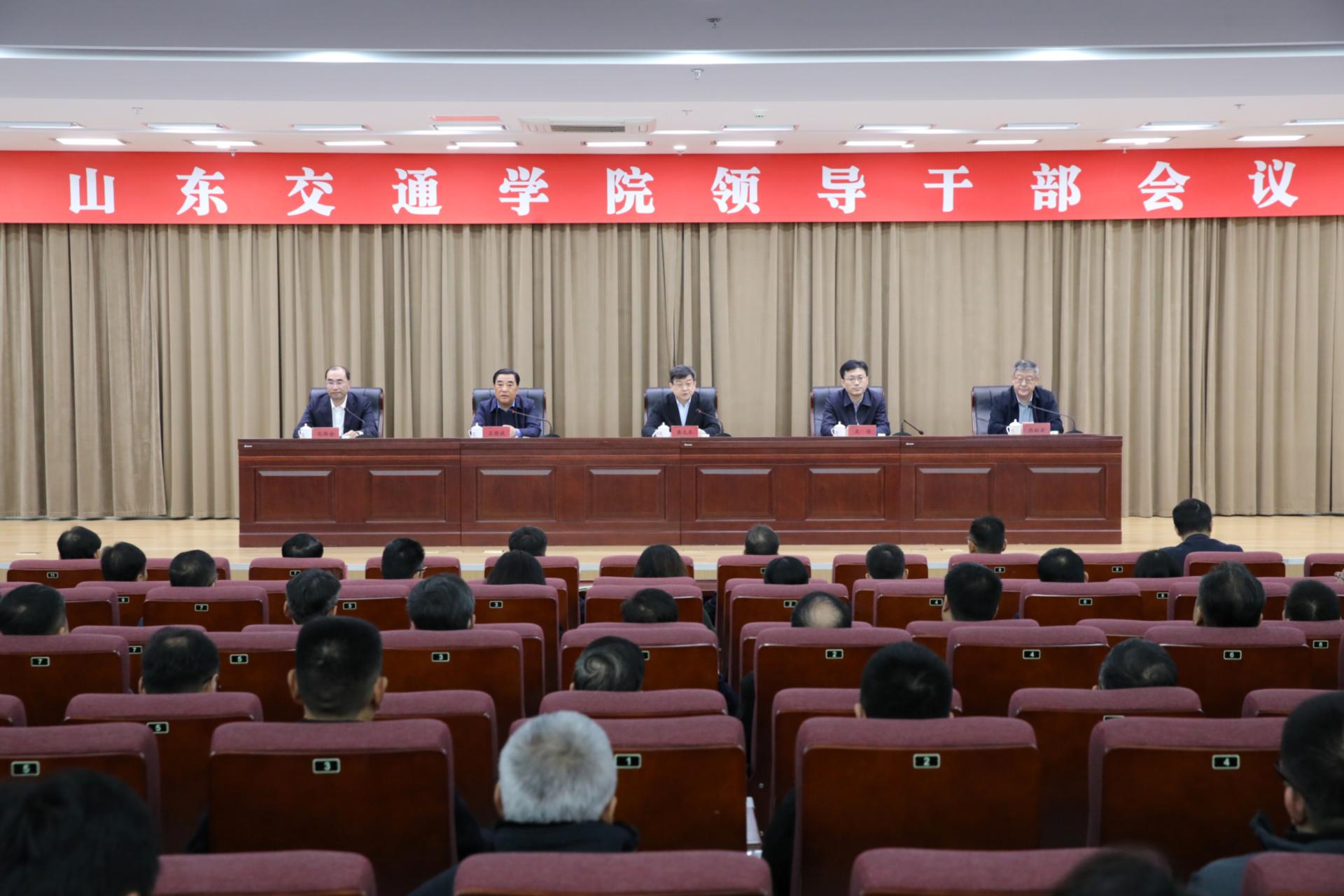 11月14日上午,学校在长清校区明德楼101报告厅召开中层及以上干部会议,宣布省委关于学校领导班子调整的决定。省委决定,孔伟金同志任山东交通学院党委副书记、院长,陈松岩同志不再担任山东交通学院党委副书记、院长。