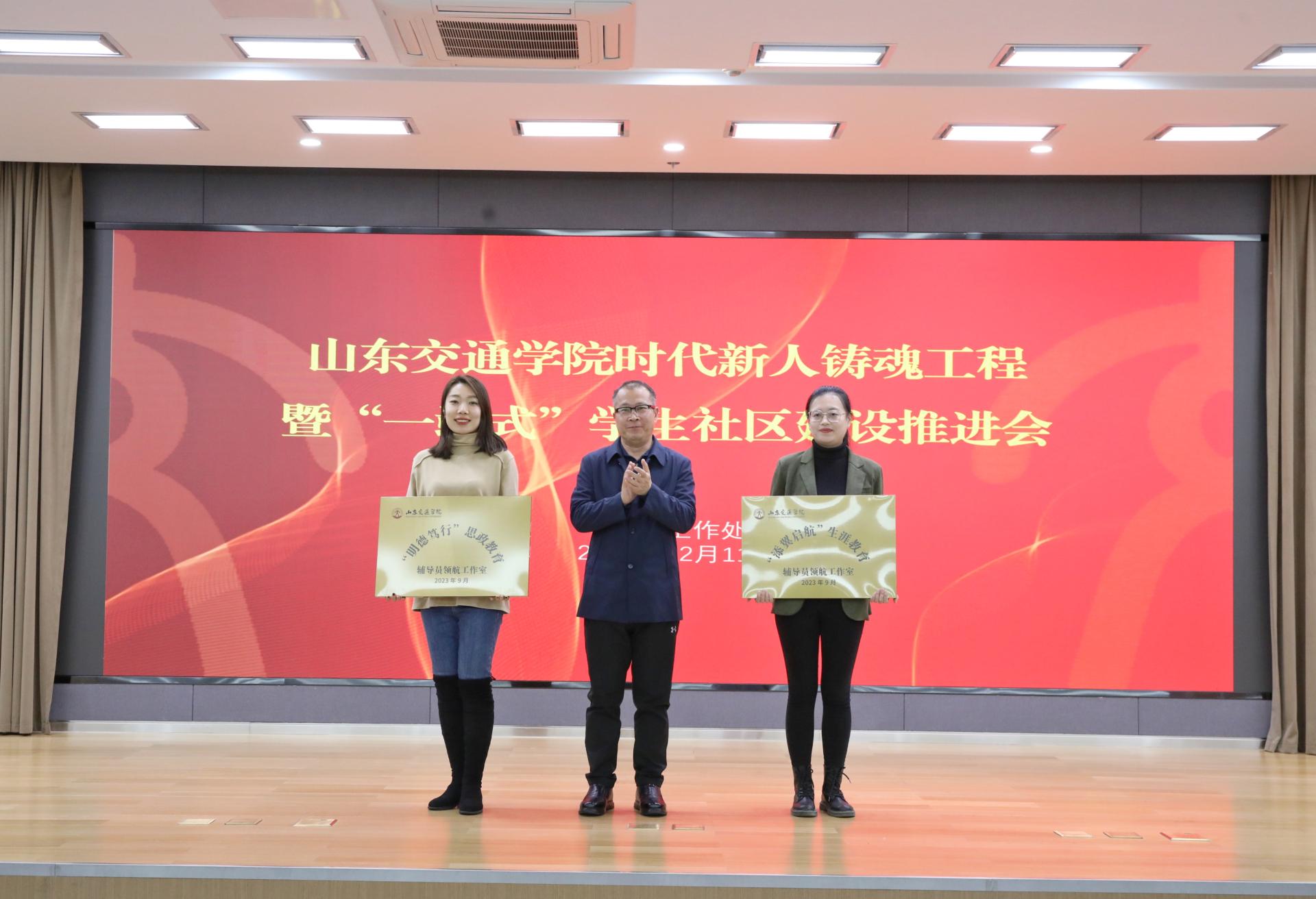 12月11日,学校在长清校区明德楼101报告厅举行“时代新人铸魂工程”暨“一站式”学生社区建设推进会。学校党委副书记李贞涛,党委委员、党委宣传部部长周颜玲出席会议。会议由学生工作处处长于翊广主持。