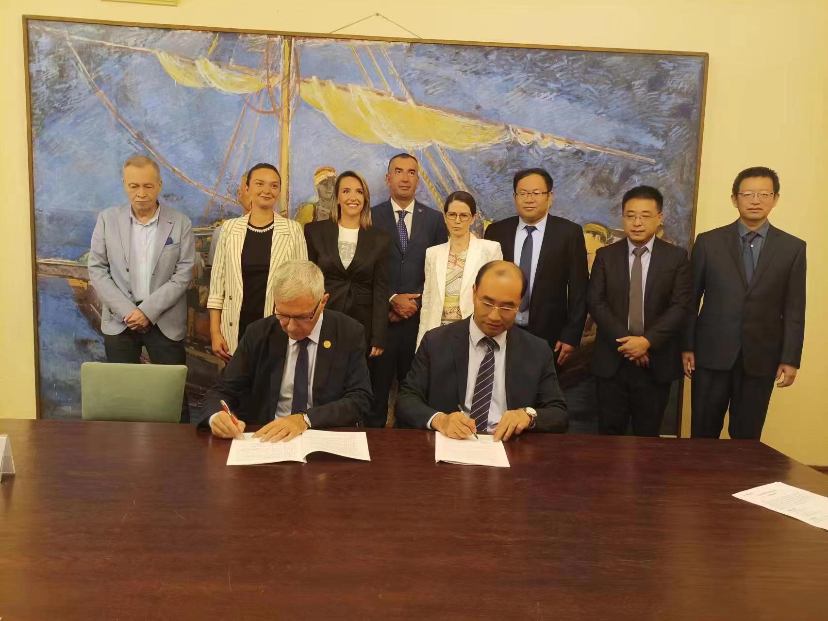 代表团赴塞尔维亚科学与艺术学院,与塞尔维亚院士米哈耶维奇、塞尔维亚电信部主席博茨克、黑山大学副校长珊伽彼科维奇进行座谈交流,同塞尔维亚科学院院士米哈耶维奇签订聘任协议,同黑山大学签署合作谅解备忘录,通过高层次外专引进,加速推进科研项目联合申报和研究生联合培养,助力学校高层次人才培养和学术科研国际化建设。