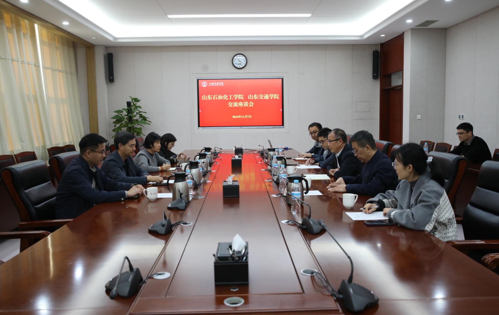 11月7日,山东石油化工学院党委委员、副院长张思峰一行来校调研。座谈交流会在长清校区明德楼303举行。学校党委副书记李贞涛出席并主持会议。