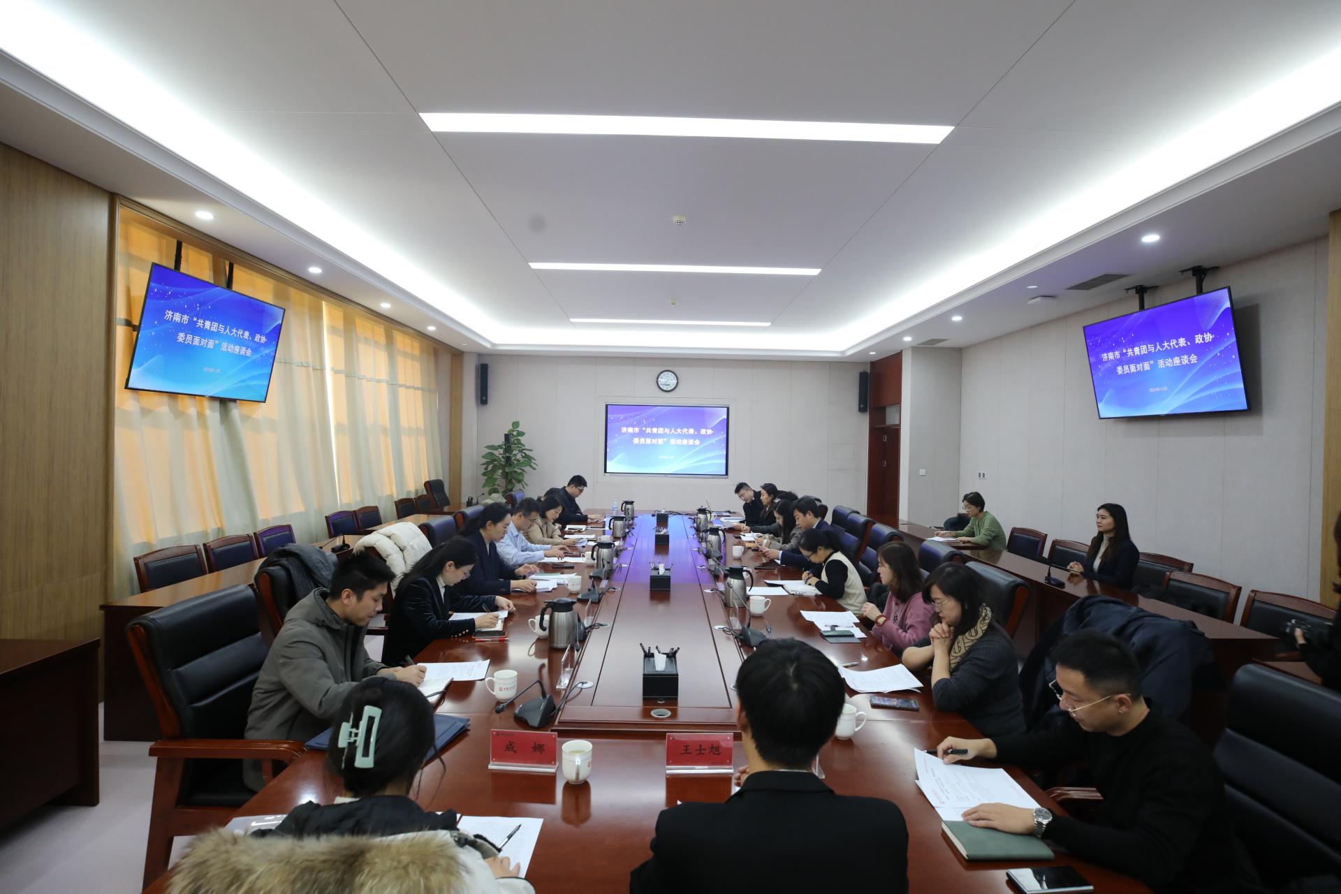 12月20日下午,济南市“共青团与人大代表、政协委员面对面”活动在我校长清校区明德楼303会议室举行。学校党委副书记李贞涛,党委委员、党委组织部部长王兴盈;共青团济南市委书记贾文;长清区委副书记董泽勇出席活动。
