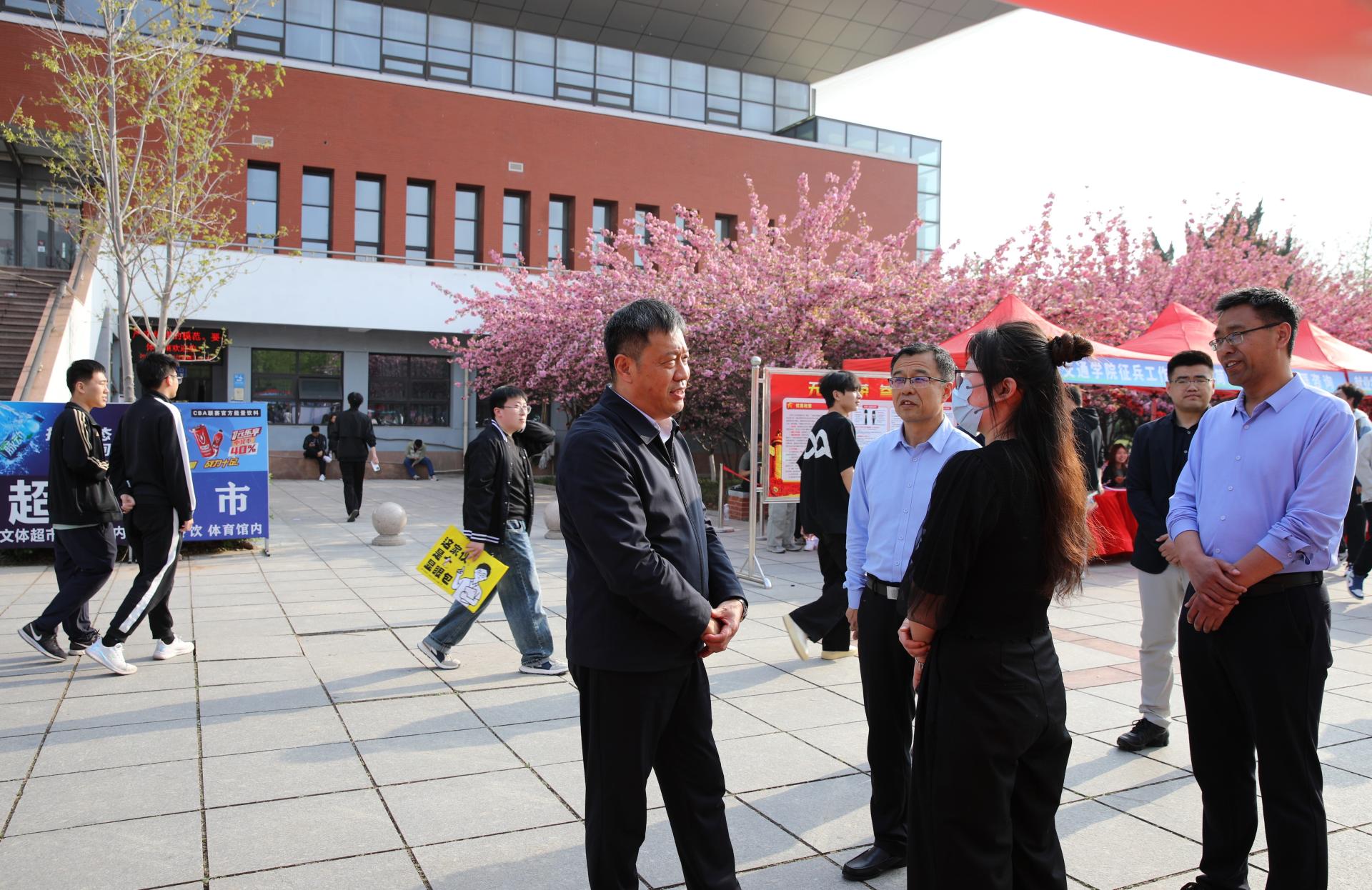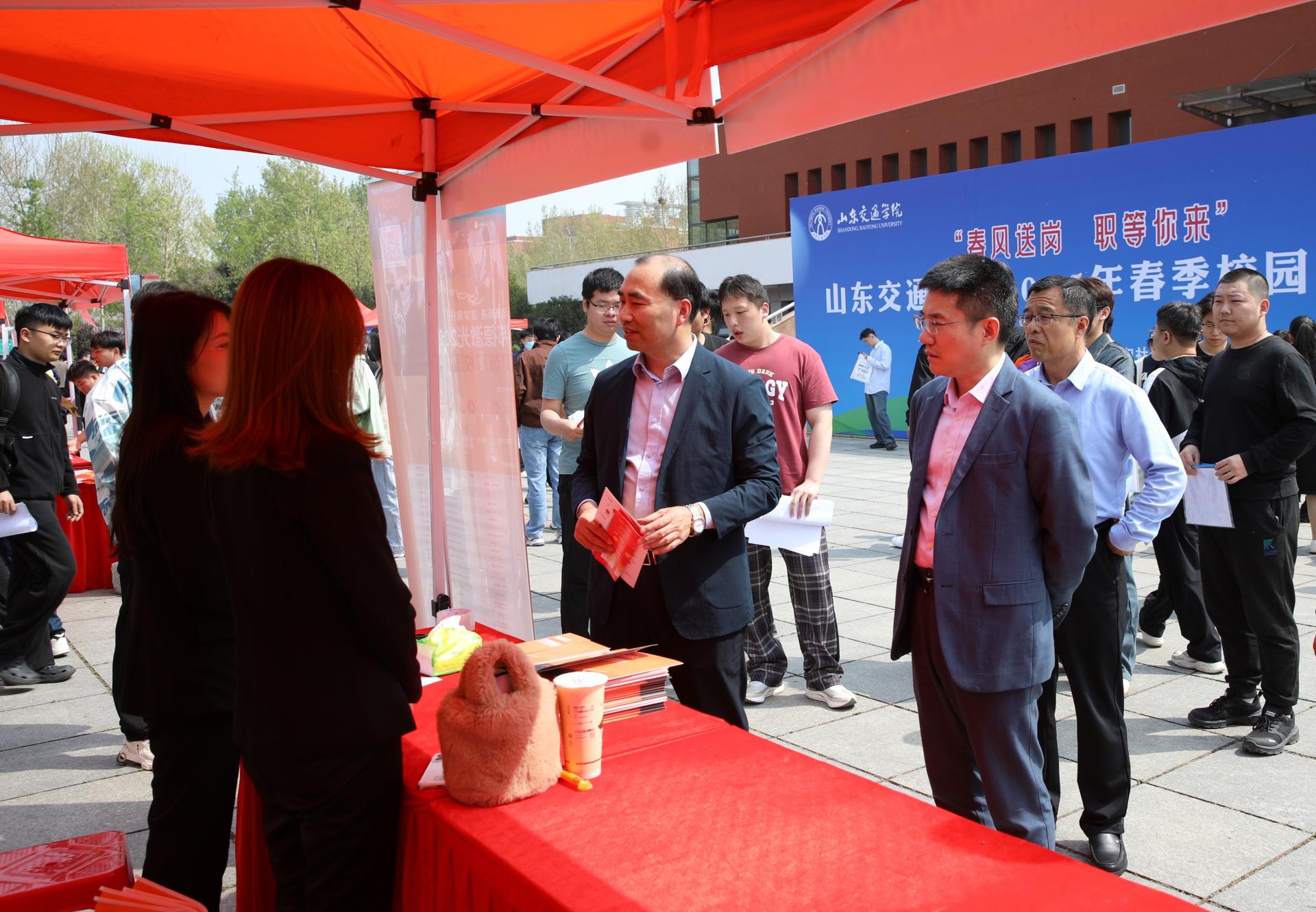 4月9日下午,学校在长清校区体育馆北广场举办“春风送岗 职等你来”2025年春季校园双选会。学校党委书记王伟,党委副书记、院长孔伟金,党委委员、副院长李秀领赴现场调研,与用人单位代表和毕业生充分沟通交流。