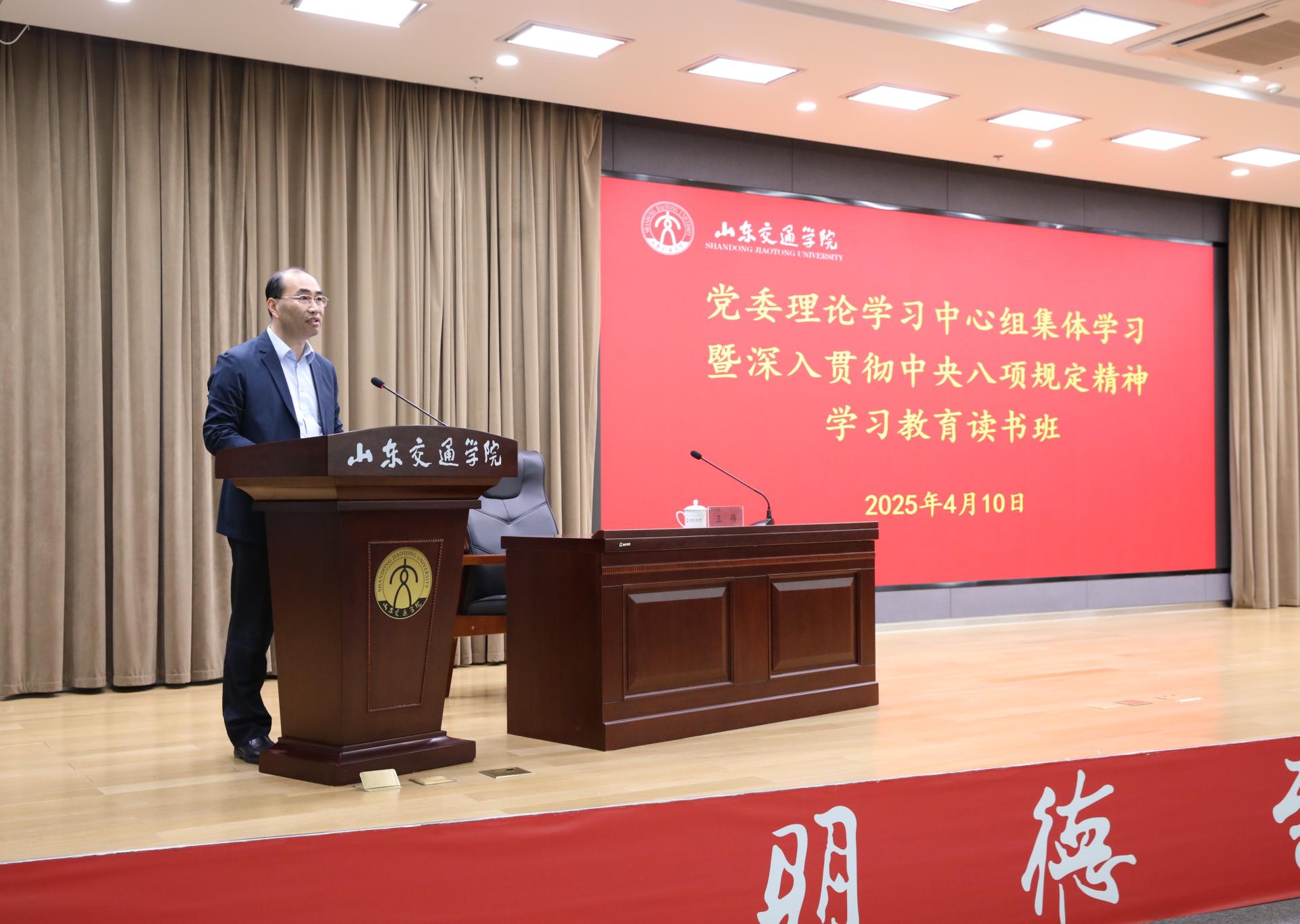4月10日至11日,学校党委理论学习中心组集体学习暨深入贯彻中央八项规定精神学习教育读书班在长清校区举行。党委书记王伟作动员讲话,并讲专题党课。学校党委领导班子成员孔伟金、李贞涛、刘世杰、姜华平、王保群、李秀领、徐静出席。会议由党委副书记李贞涛主持。