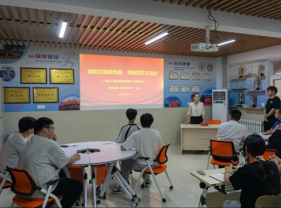 学校党委委员、党委组织部部长王兴盈为工程机械学院机械241班学生讲授思政课。她指出,个人的成长成才,需要学校提供的竞赛平台、社团活动等外部推力,更关键的是要激发自身追求卓越、不懈奋斗的内在动力。她紧密结合个人成长与国家社会需求两个维度,勉励同学们要深入思考“要做什么、怎么做、期望达到什么效果、以及如何持续改进”等问题,努力将课堂所学的理论知识转化为实践能力,积极投身于服务国家发展和社会进步的事业中去,实现个人价值与社会价值的统一。