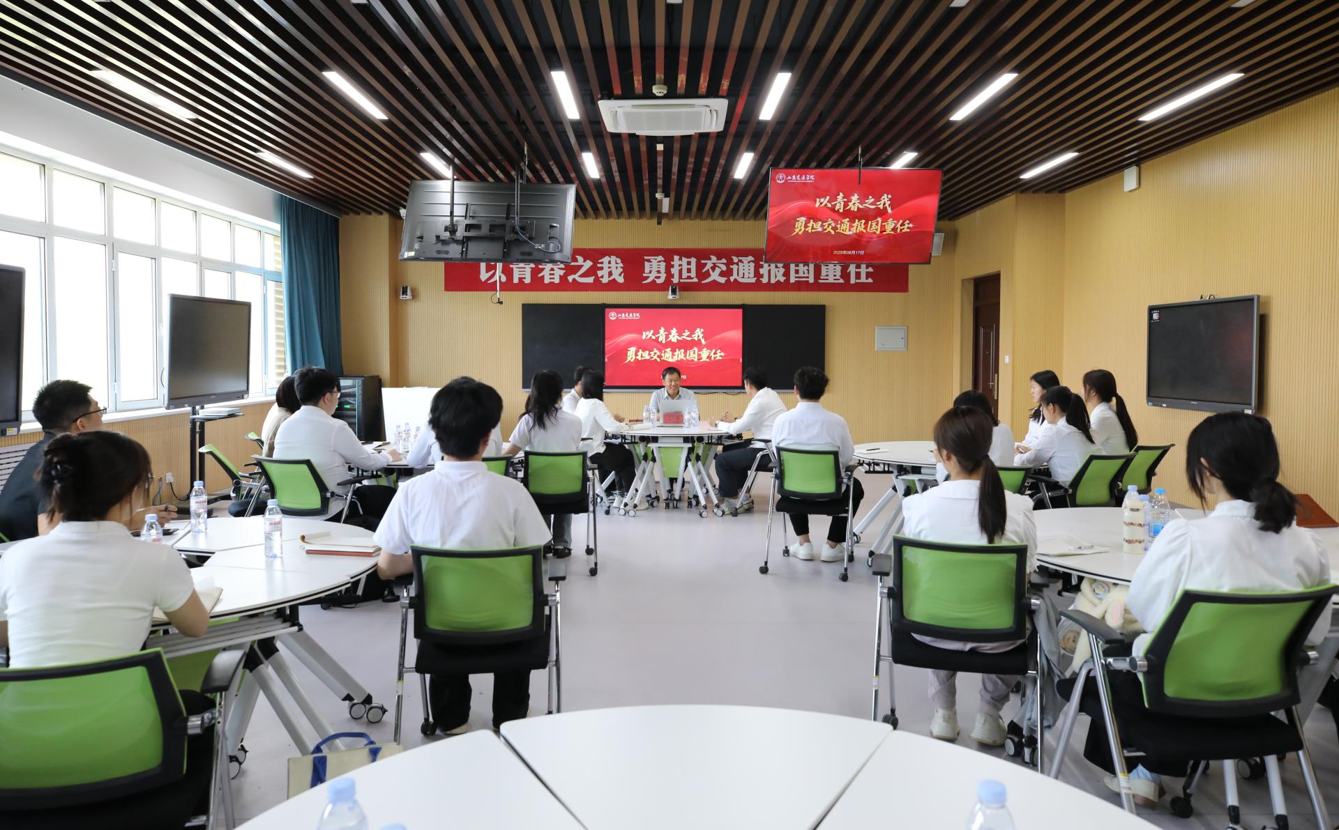 6月17日下午,学校党委书记王伟在长清校区机电楼A218智慧教室,为交通法学院法学234班学生、“青马工程”学员、2025届毕业生代表讲授《以青春之我 勇担交通报国重任》思政课。