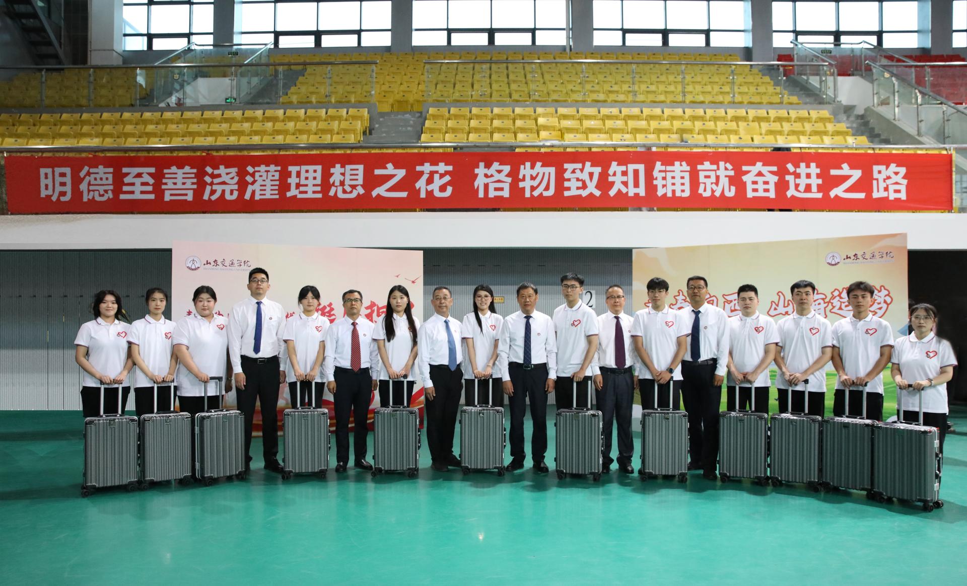 近日,学校领导在长清校区为2025年西部计划志愿者送行。党委书记王伟、党委副书记李贞涛参加活动。