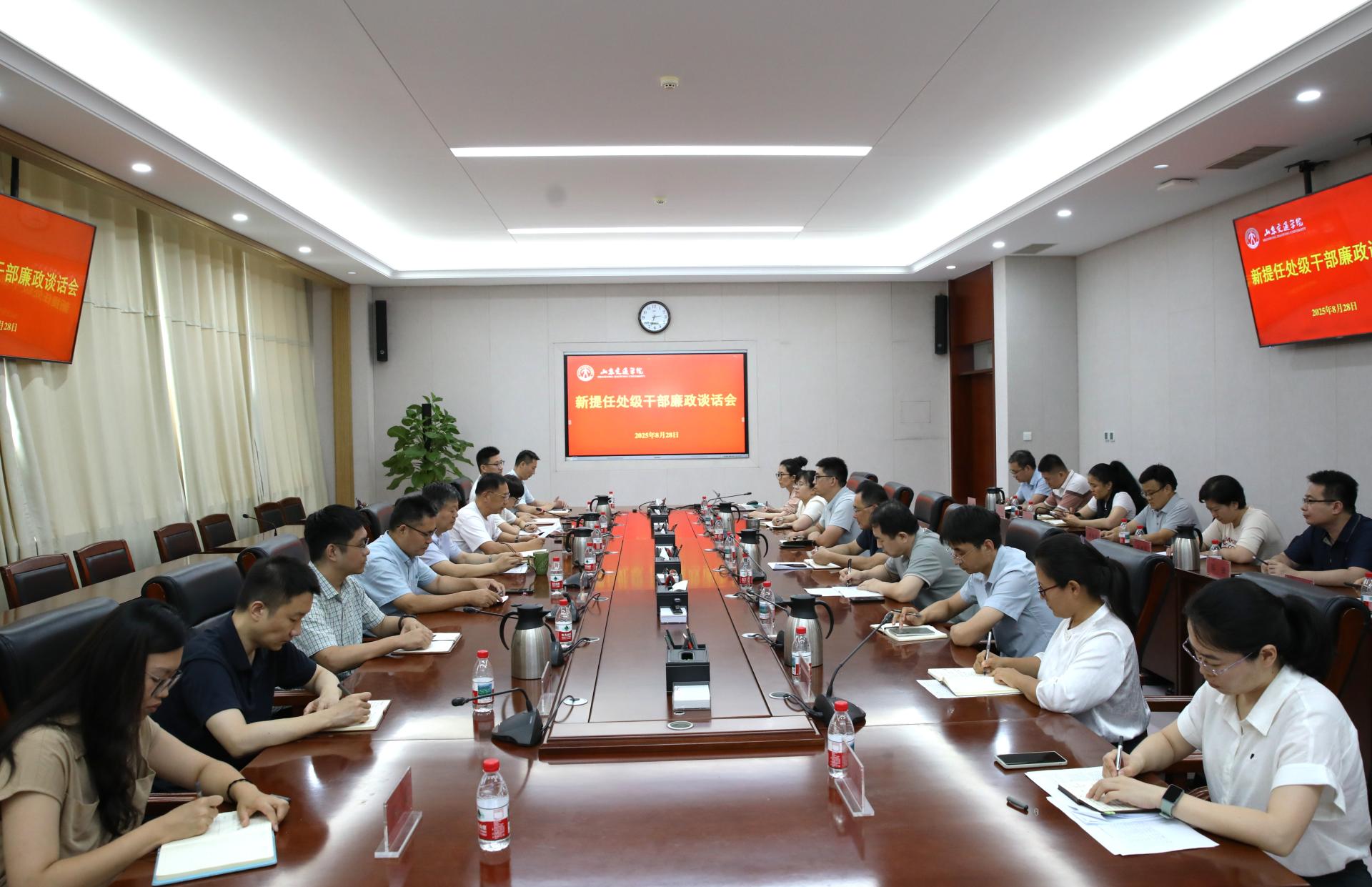 8月28日下午,学校在长清校区303会议室组织开展新提任处级干部廉政谈话。学校党委委员、纪委书记、监察专员刘世杰出席。会议由纪委副书记程伟渊主持。